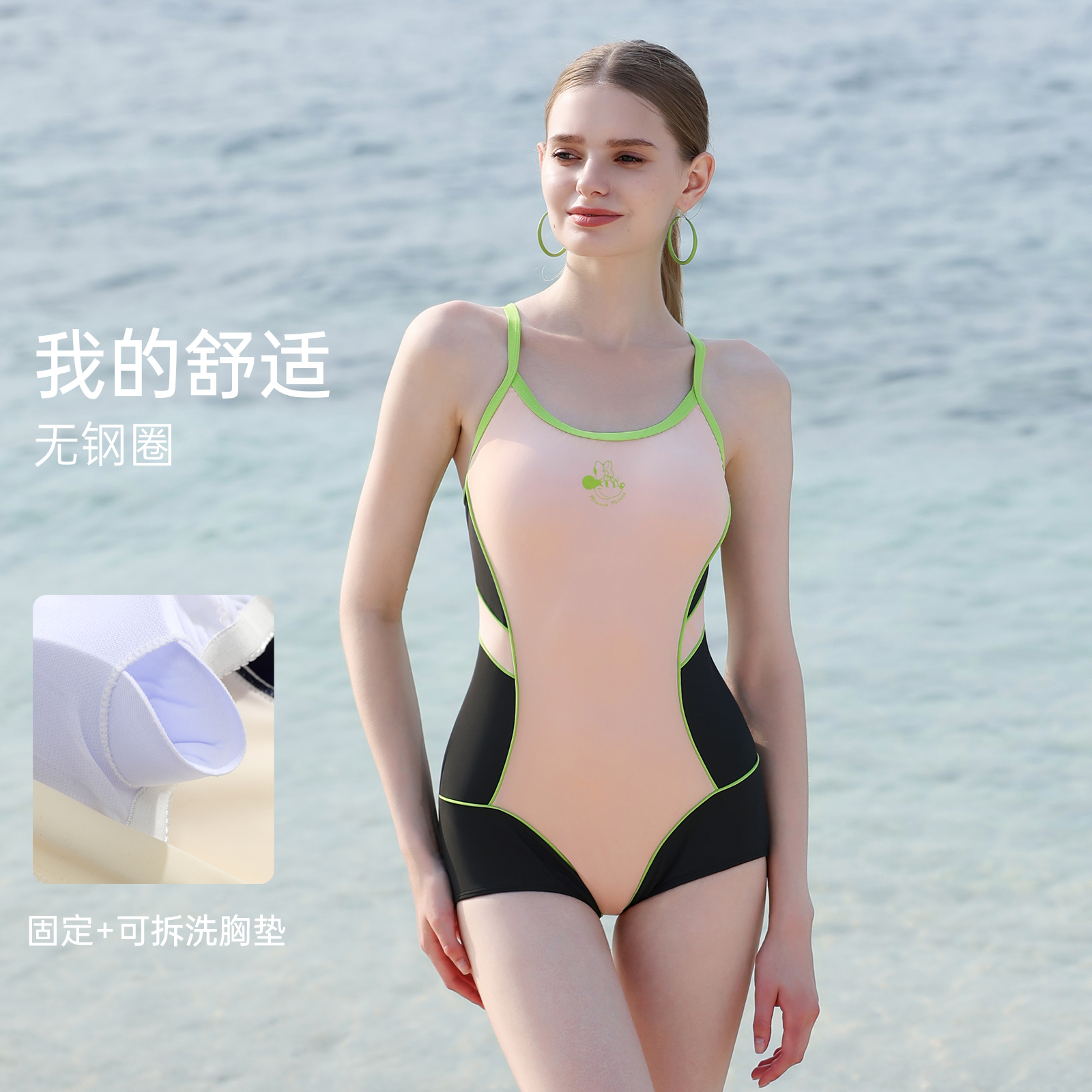 迪士尼泳衣女士连体平角专业竞速游泳专用训练运动成人游泳衣新款