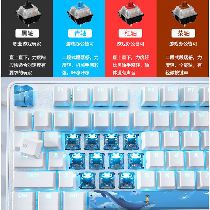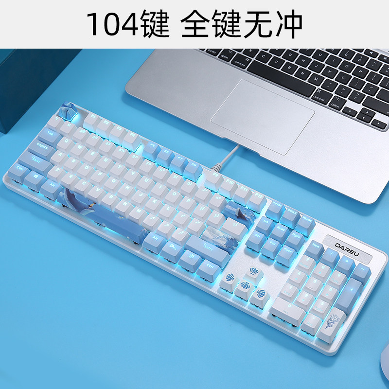 达尔优《鲸鱼》有线电竞游戏男女生高颜值办公打字电脑机械键盘