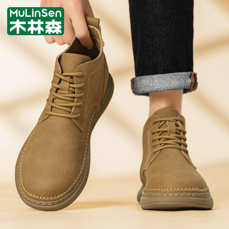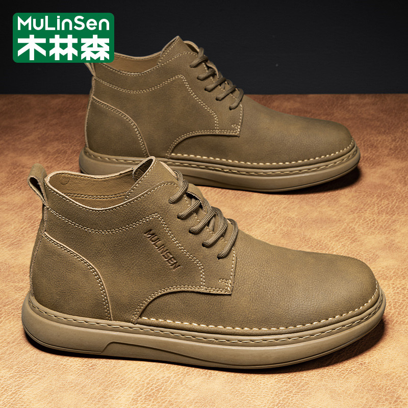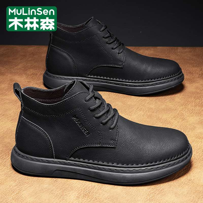木林森男鞋冬季休闲运动英伦风复古高帮工装马丁户外登山皮鞋短靴