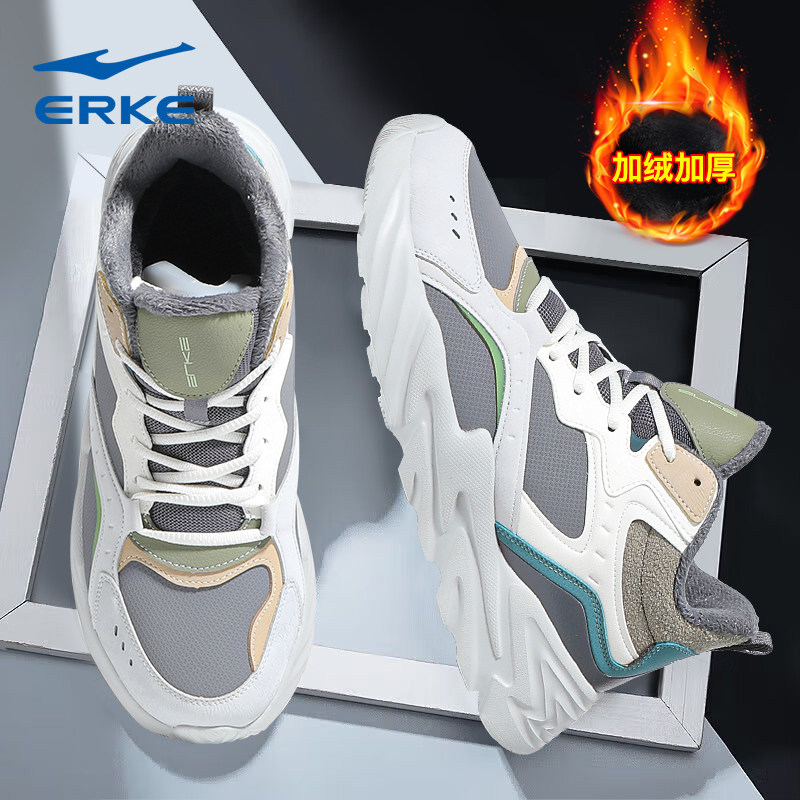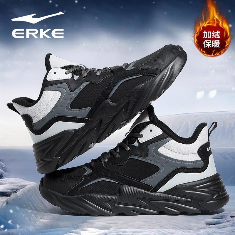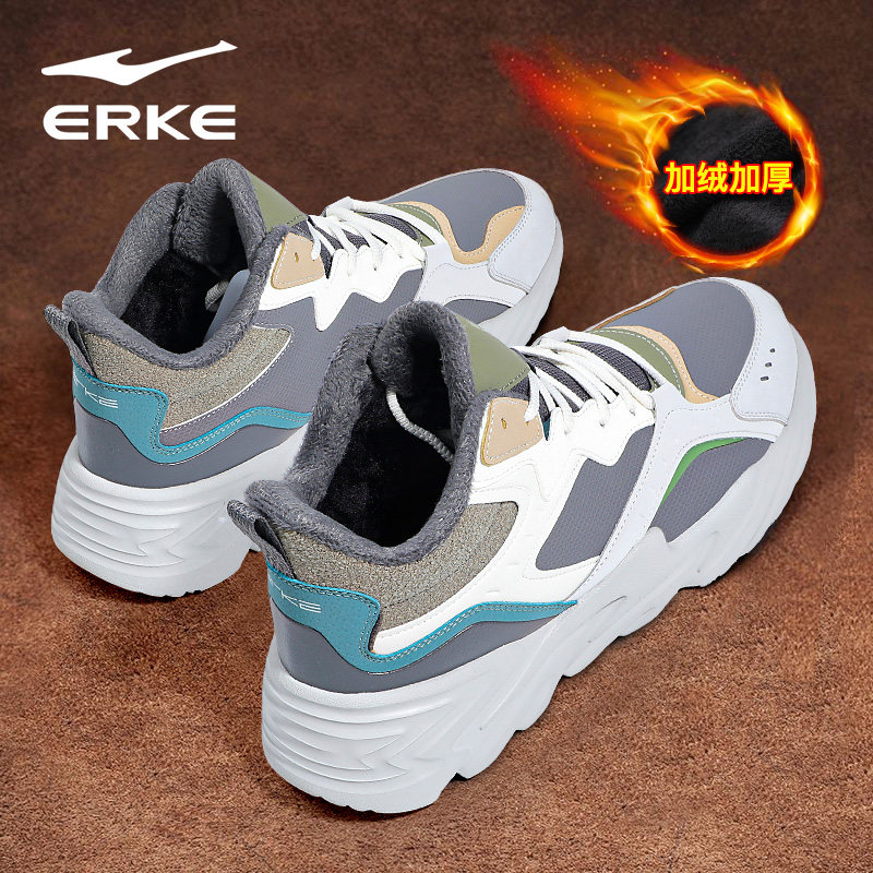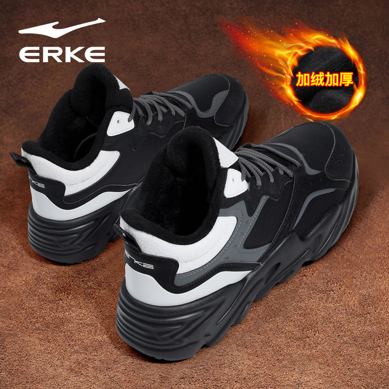 鸿星尔克加绒男鞋冬季新款防寒保暖皮面运动鞋男士厚底减震跑步鞋