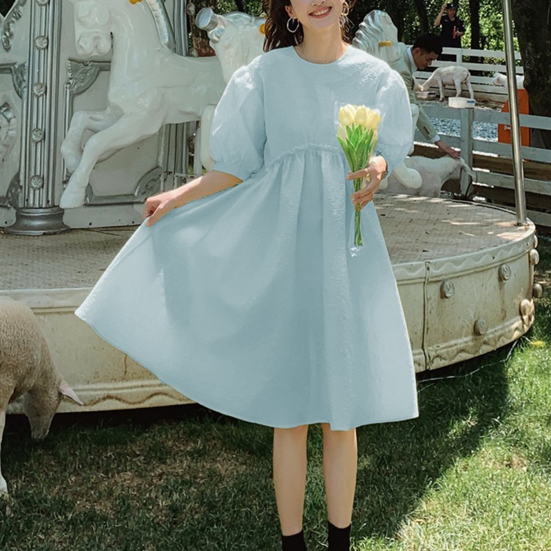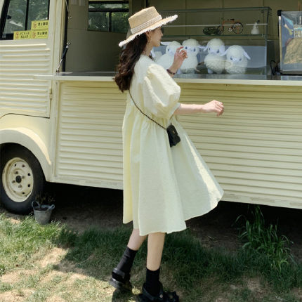 孕妇装连衣e裙夏款大码宽松夏季潮妈遮肚不显怀孕妈妈夏装蓬蓬裙