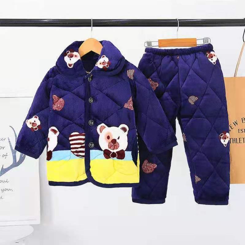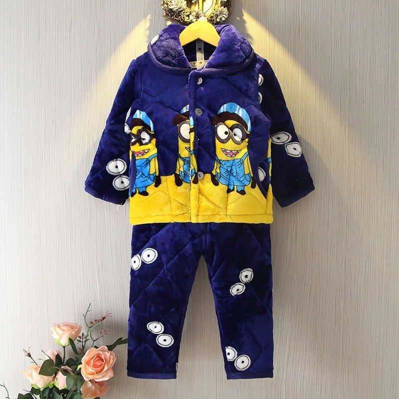 秋冬季儿童睡衣加厚法兰绒保暖夹棉男童女童珊瑚绒宝宝小孩家居服