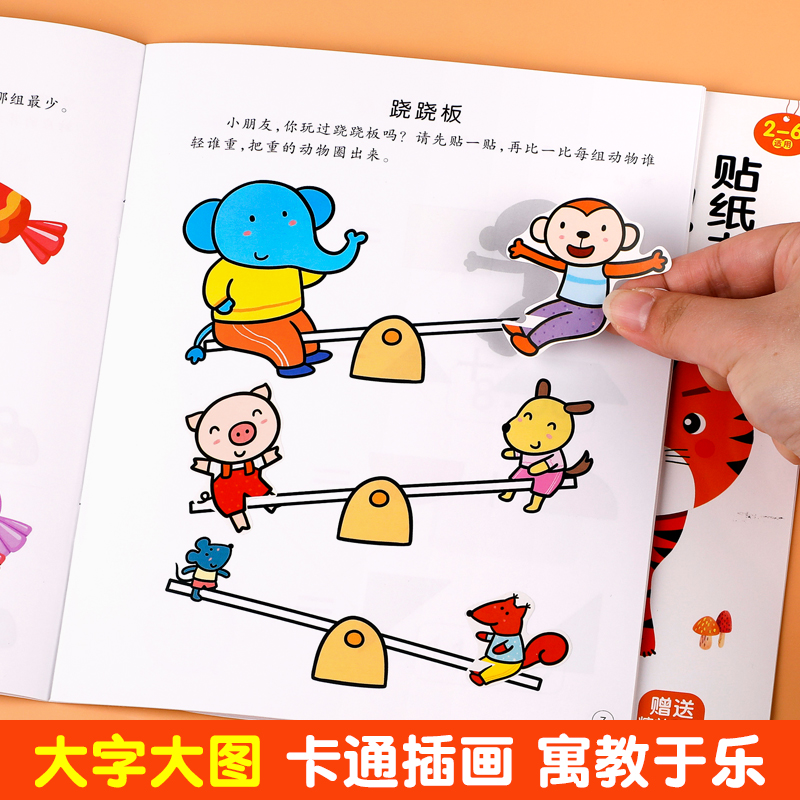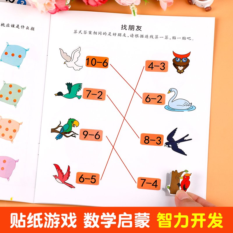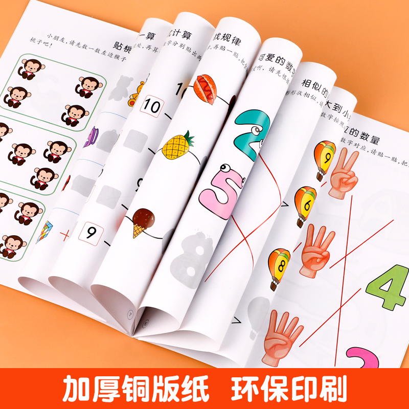 全套6册 蒙氏数学贴纸书 儿童数学逻辑思维训练游戏书2-3-6岁宝宝贴贴画加减法训练比大小认识时间数字 幼儿园小中大班适用天天练