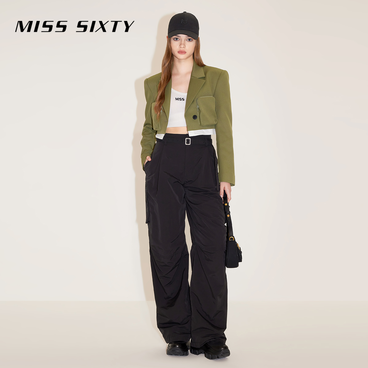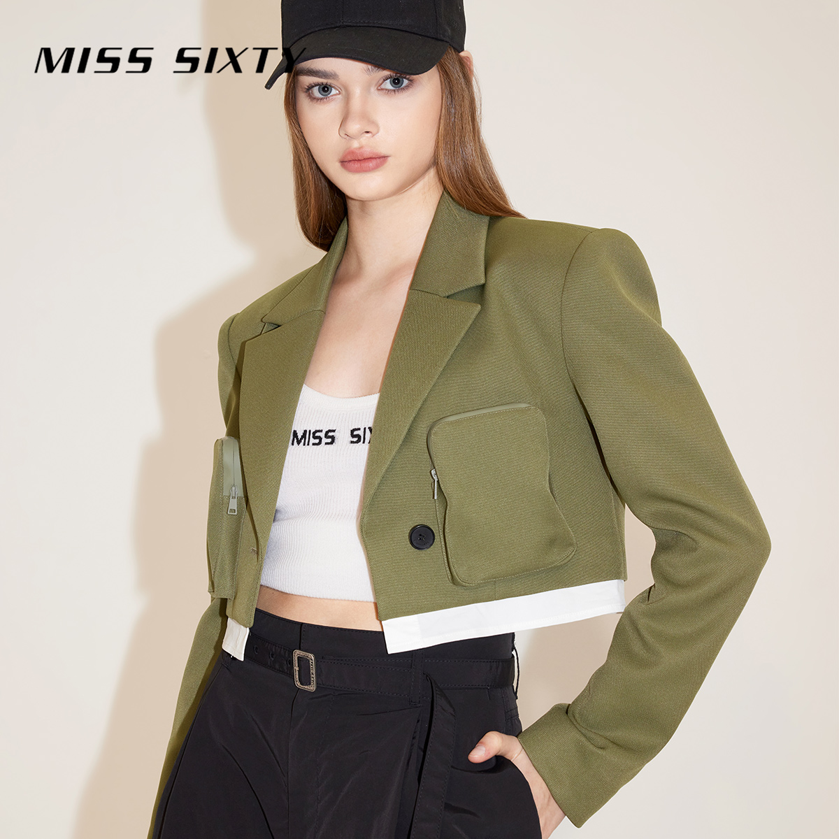 Miss Sixty外套女西装领垫肩一粒扣复古工装风拼接修身短款潮酷