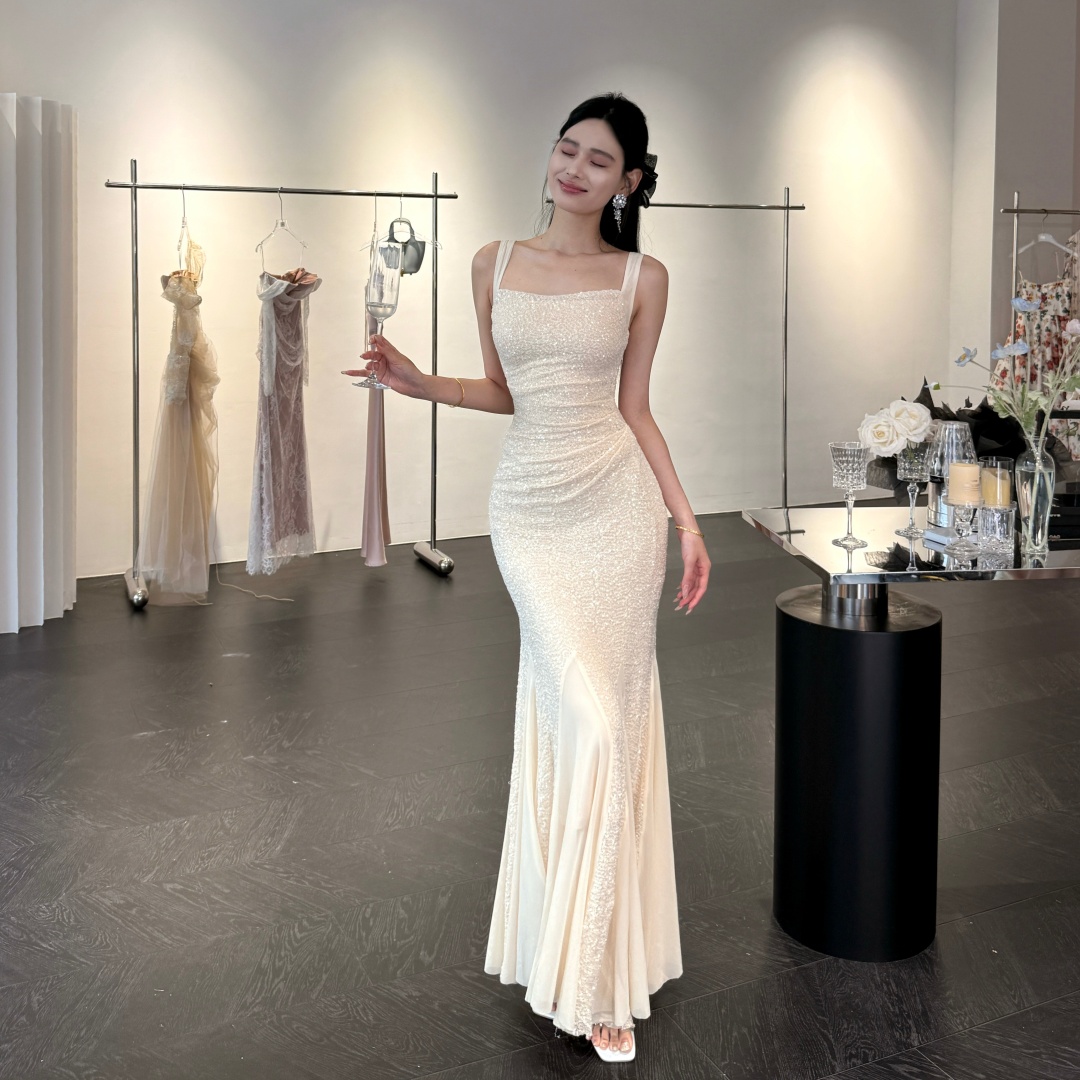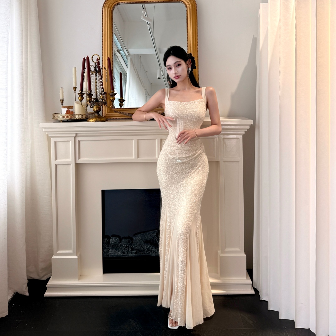 【JINGGUO轻奢】小众设计法式高级弹力亮片连衣裙绝美鱼尾裙7451