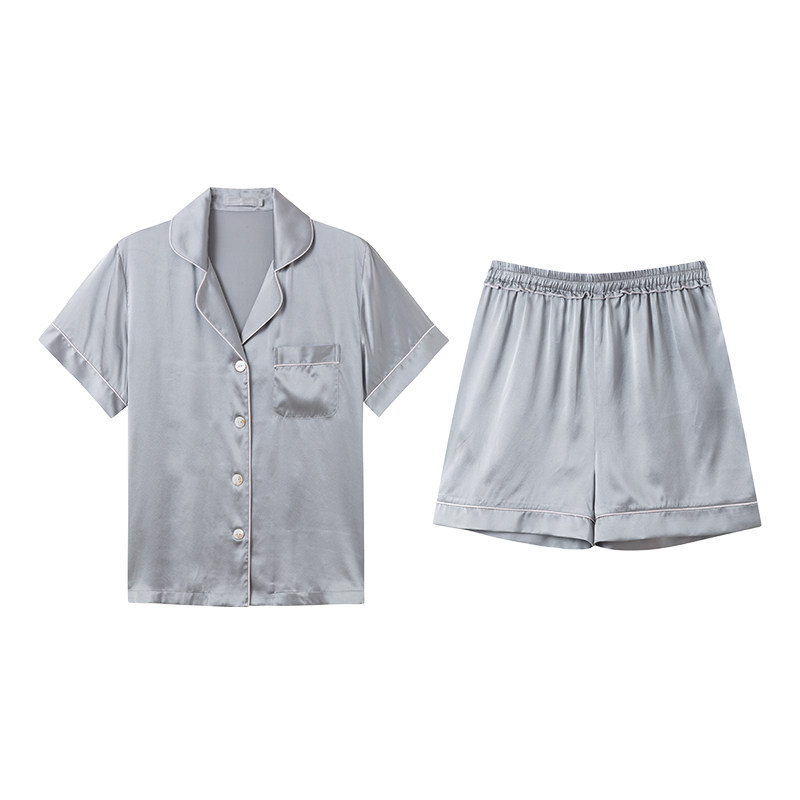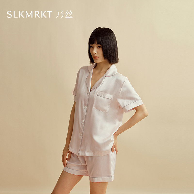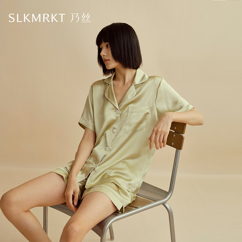 SLKMRKT乃丝真丝睡衣女短袖短裤两件套夏季桑蚕丝高级家居服套装