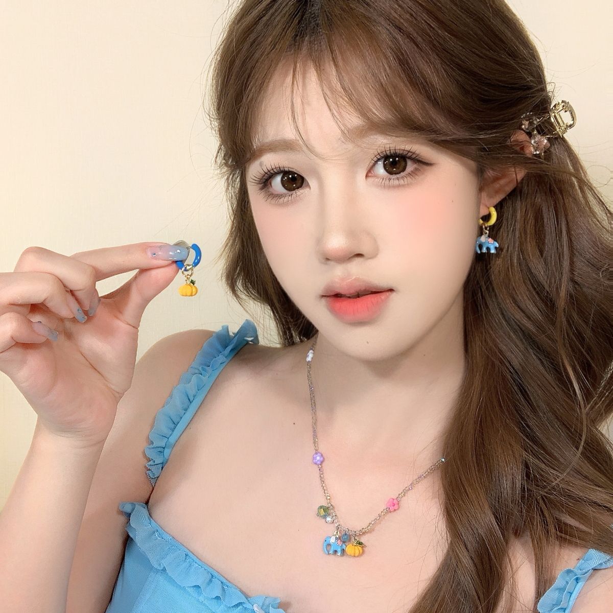 可爱卡通滴釉小象南瓜耳环女小众设计感不对称耳扣高级感耳坠耳饰