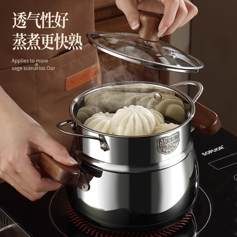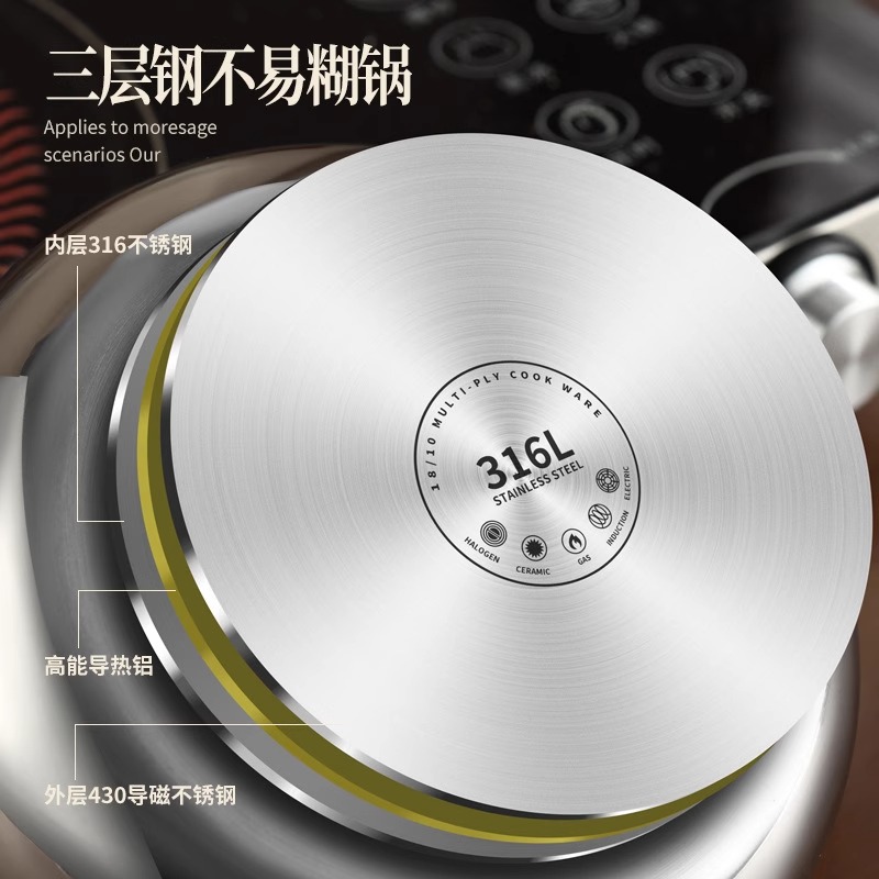 316L不锈钢汤锅煮锅电磁炉家用双耳锅加厚煮汤锅一人食辅食锅奶锅