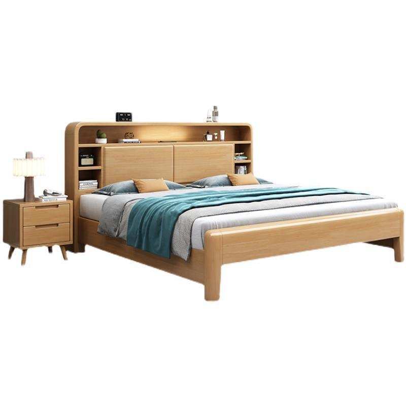 北欧实木床1.8软靠双人大床1.5m现代简约小户型卧室储物原木风床