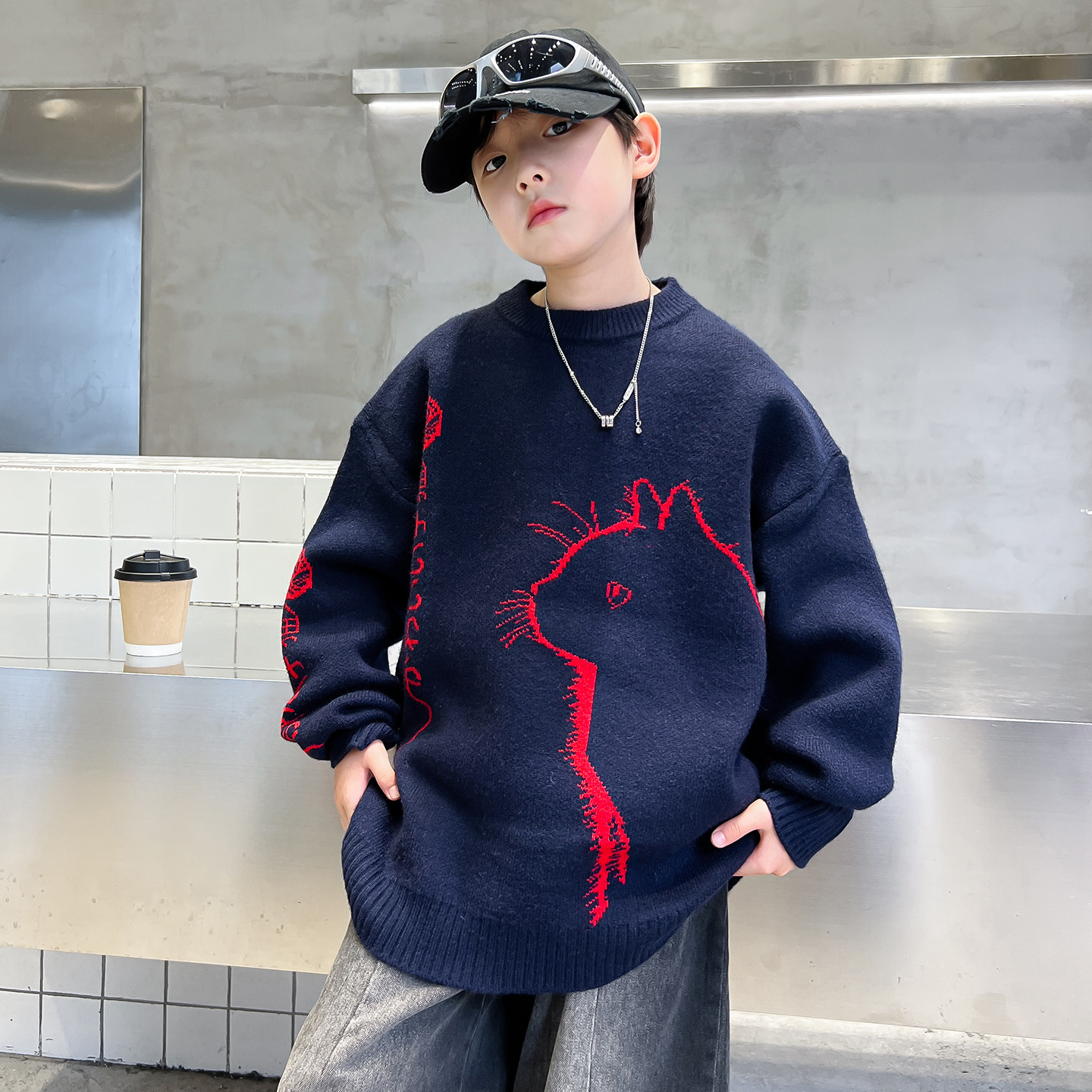 儿童装男童冬装毛衣2025新款大童冬季套头针织衫秋冬款青少年男孩