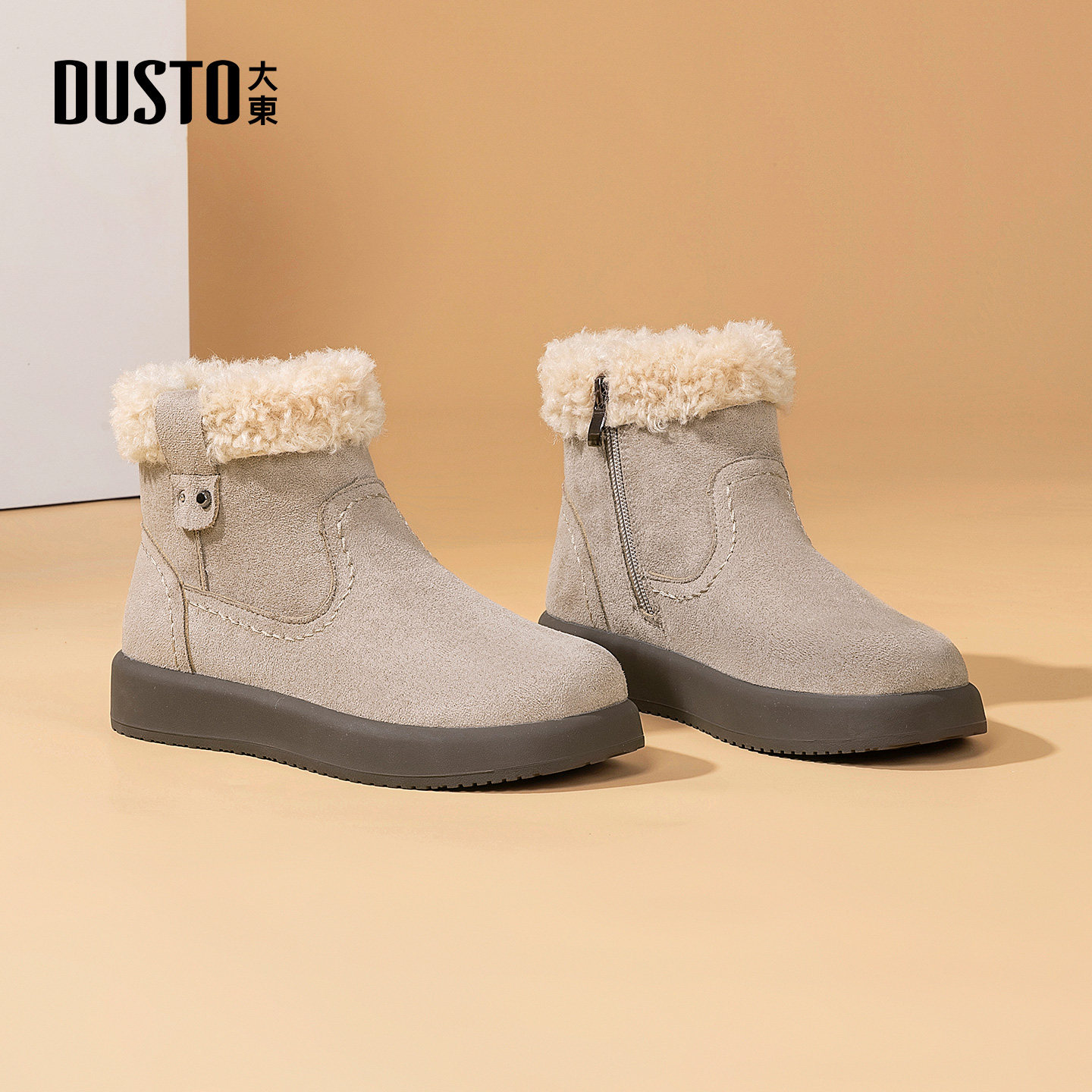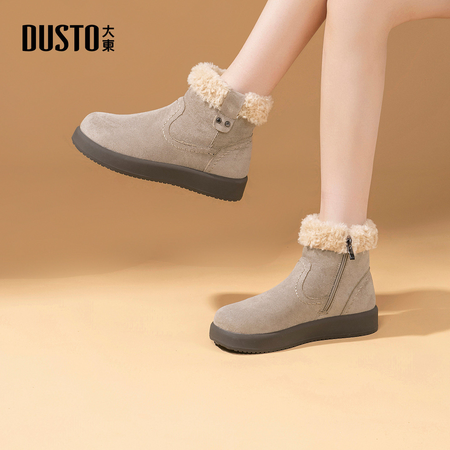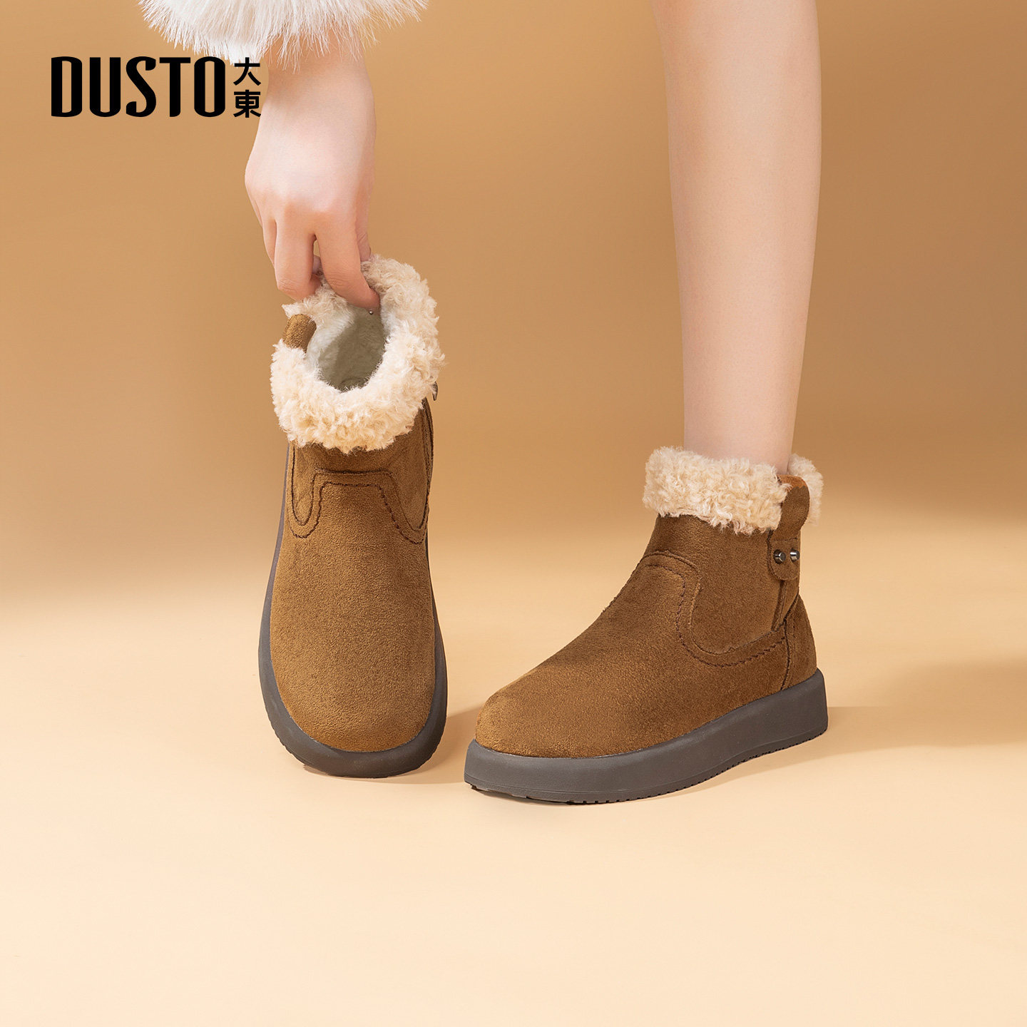 大东官方正品棕色厚底雪地靴