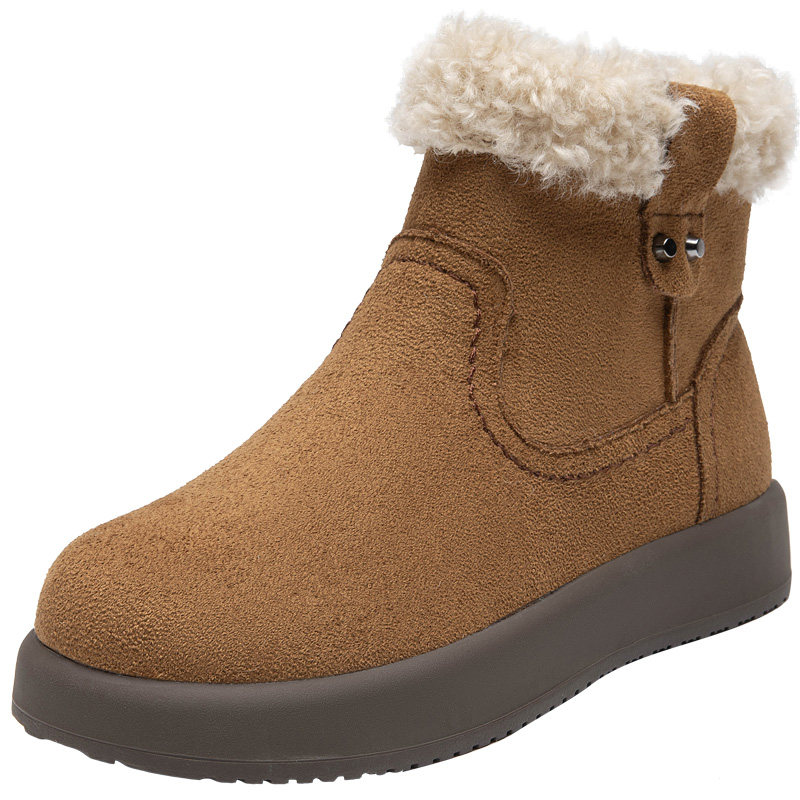 大东棕色雪地靴女款2025新款冬季加绒保暖勃肯棉鞋厚底毛毛短靴女