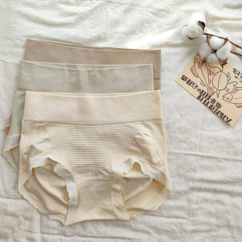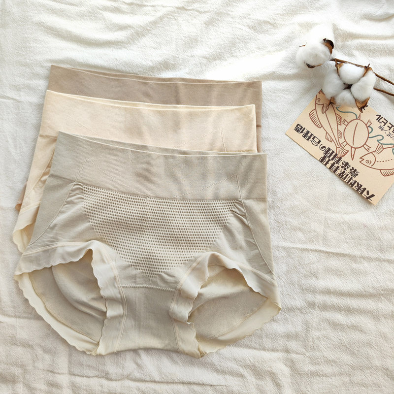 版型巨好~收腹蜜桃臀中高腰女内裤大地色蜂窝收腹3D蚕丝裆三角裤