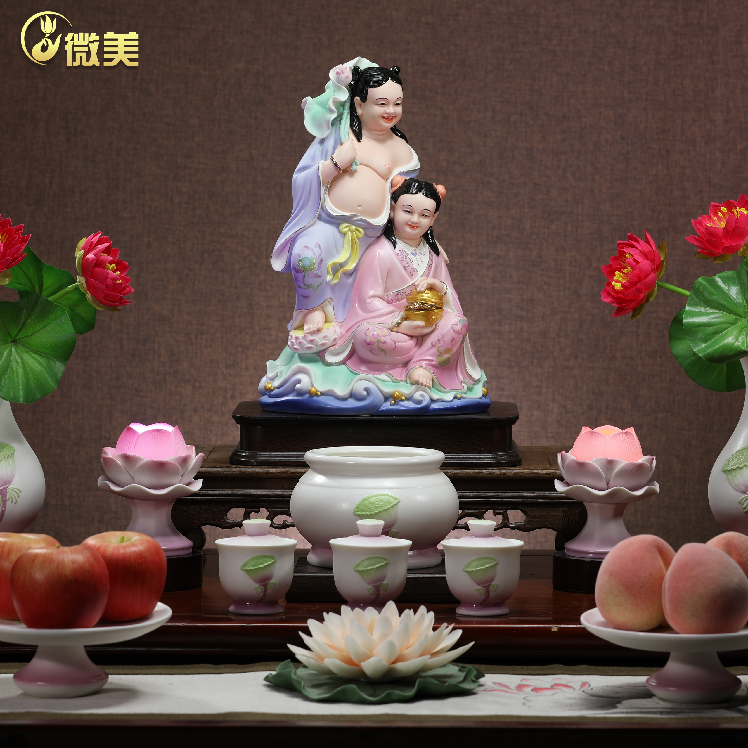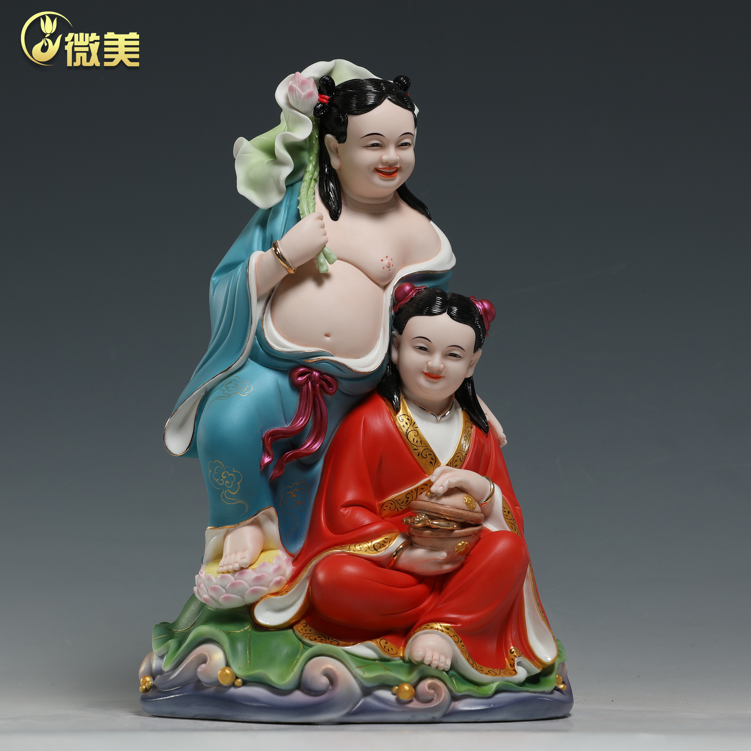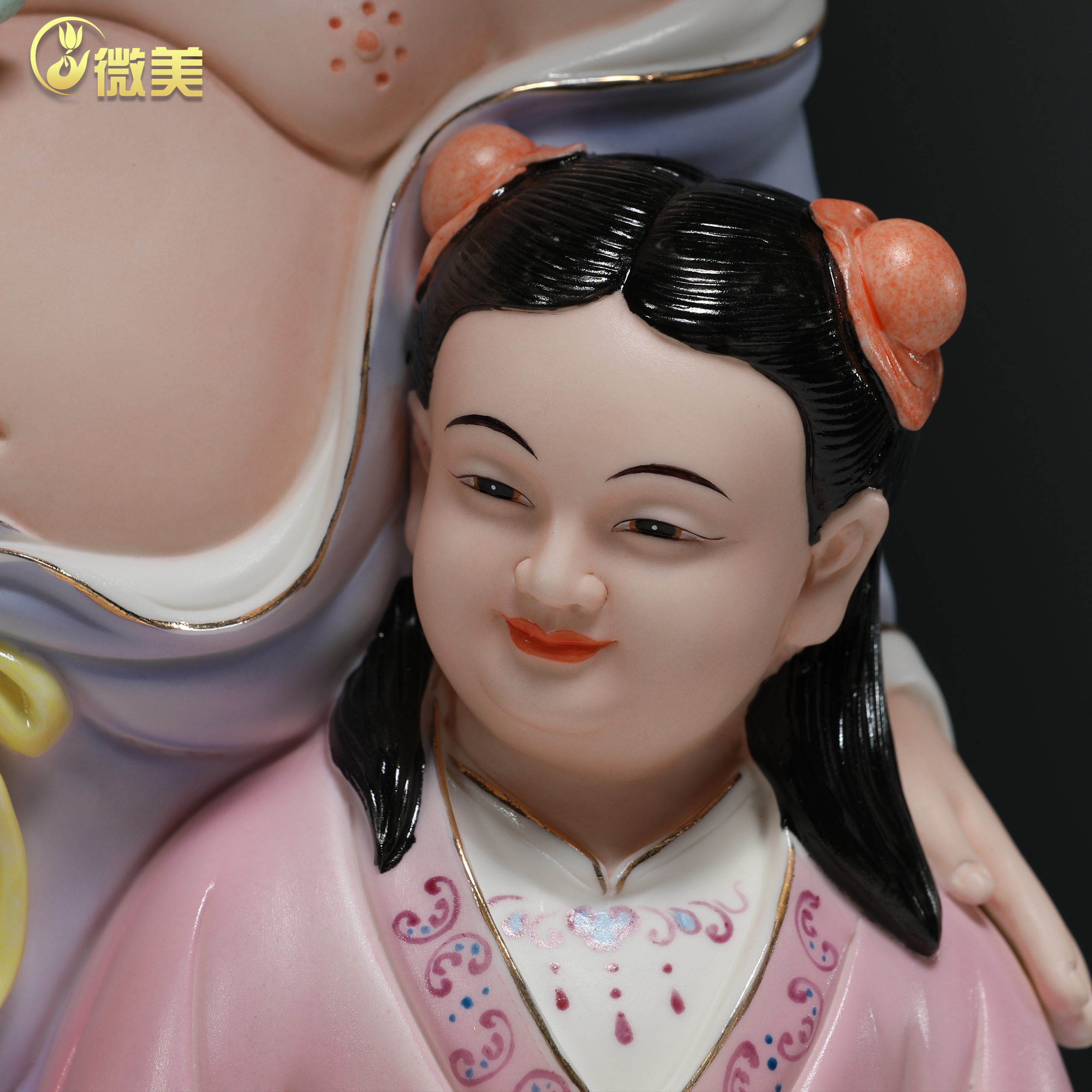 微美陶瓷14寸和合二圣神像供奉摆件居家用卧室客厅新婚工艺礼品