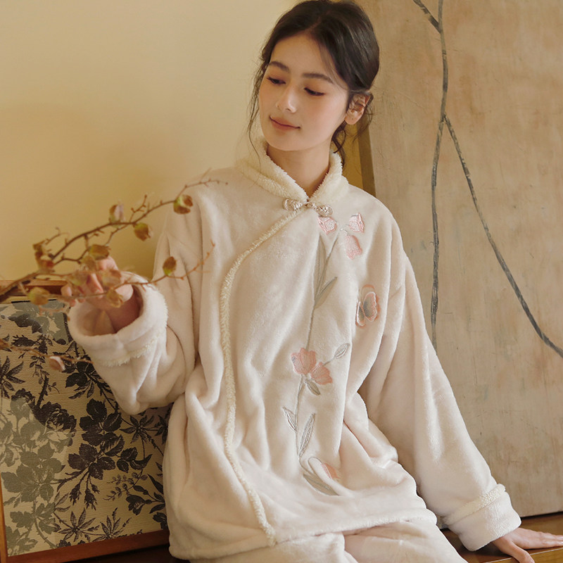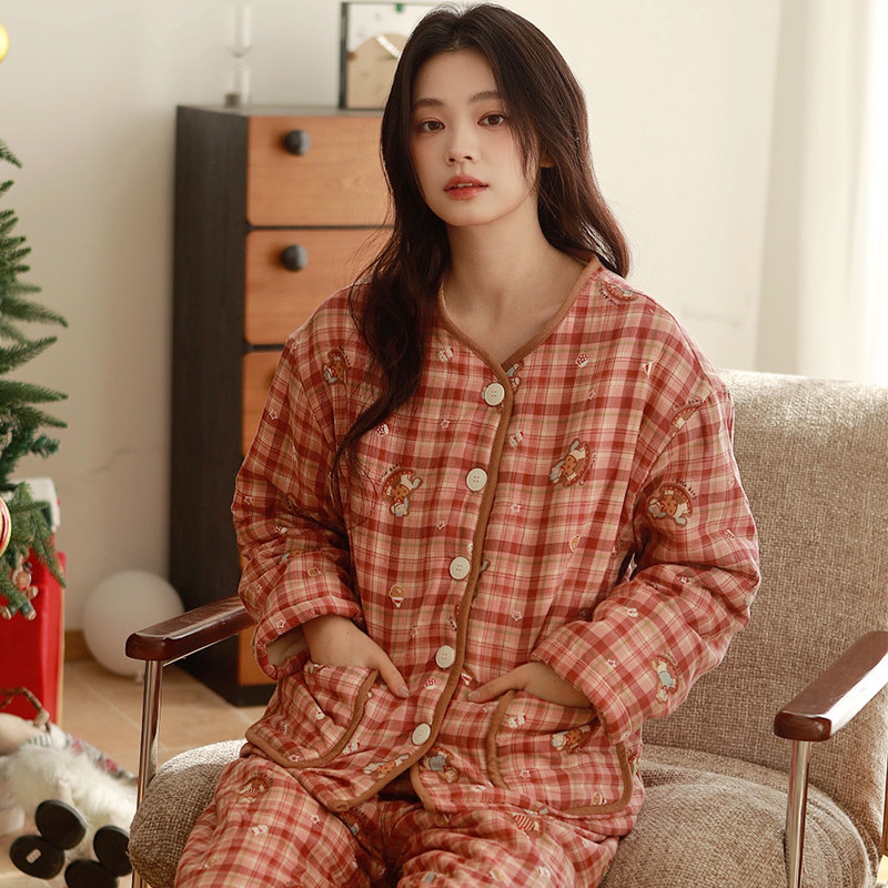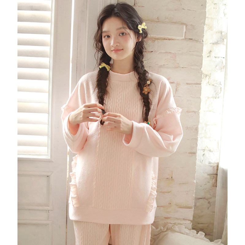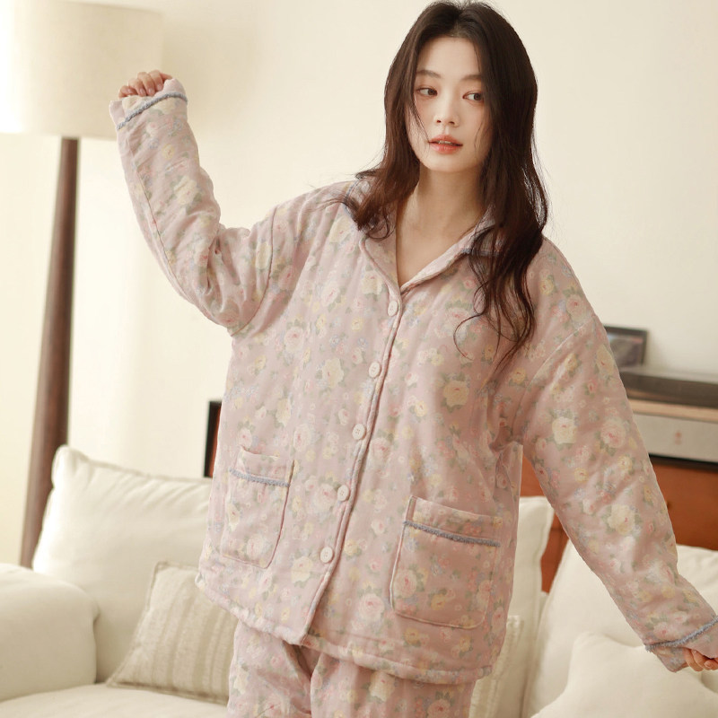 【断码清仓】纯棉睡衣女春秋冬磨毛加厚夹棉长袖家居服套装可外穿