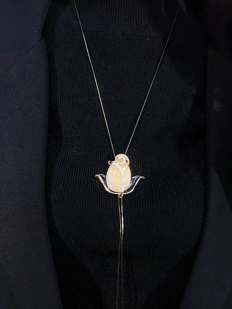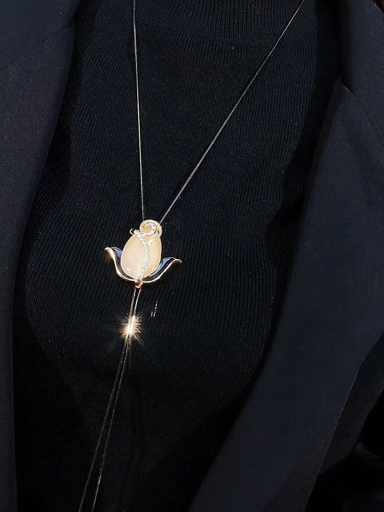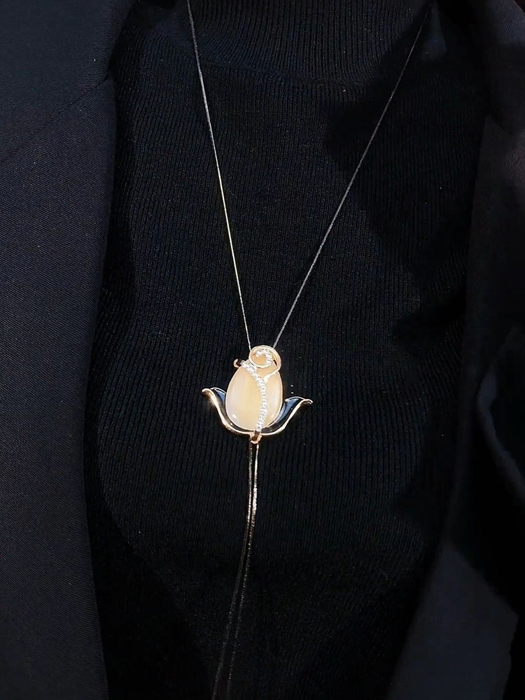 唯美猫眼郁金香毛衣链长款项链秋冬百搭简约时尚韩版个性高档配饰