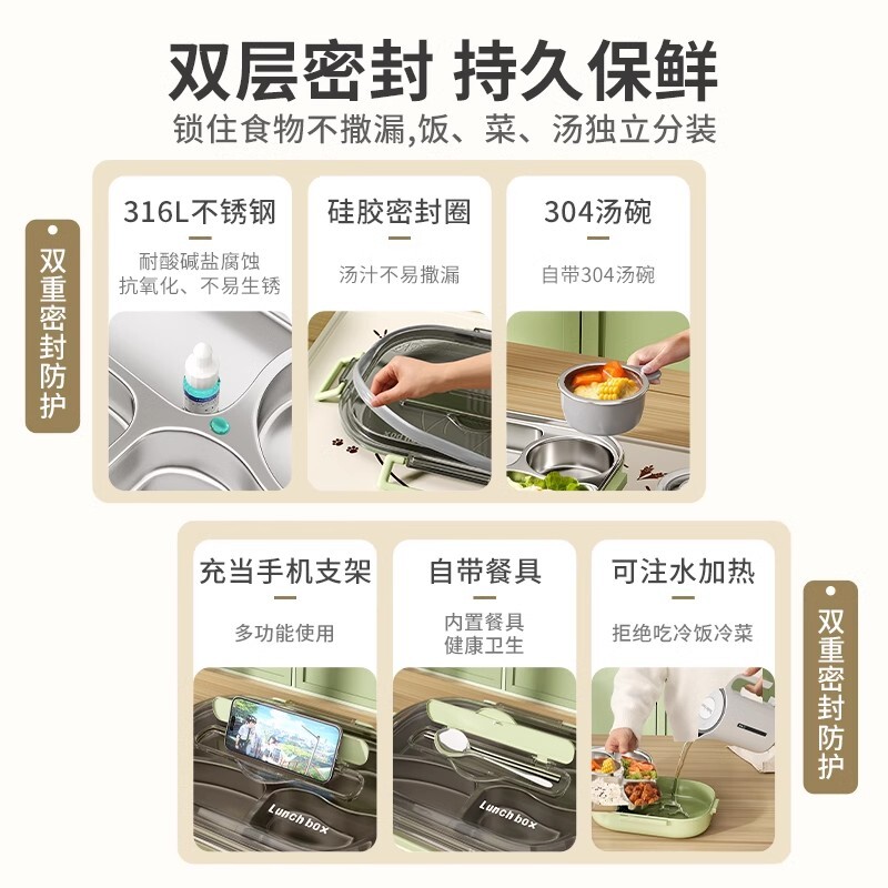 316L不锈钢保温饭盒小学生儿童专用分格餐盘便当盒上班族餐盒三格