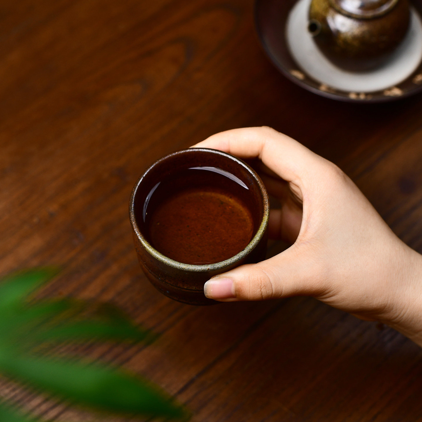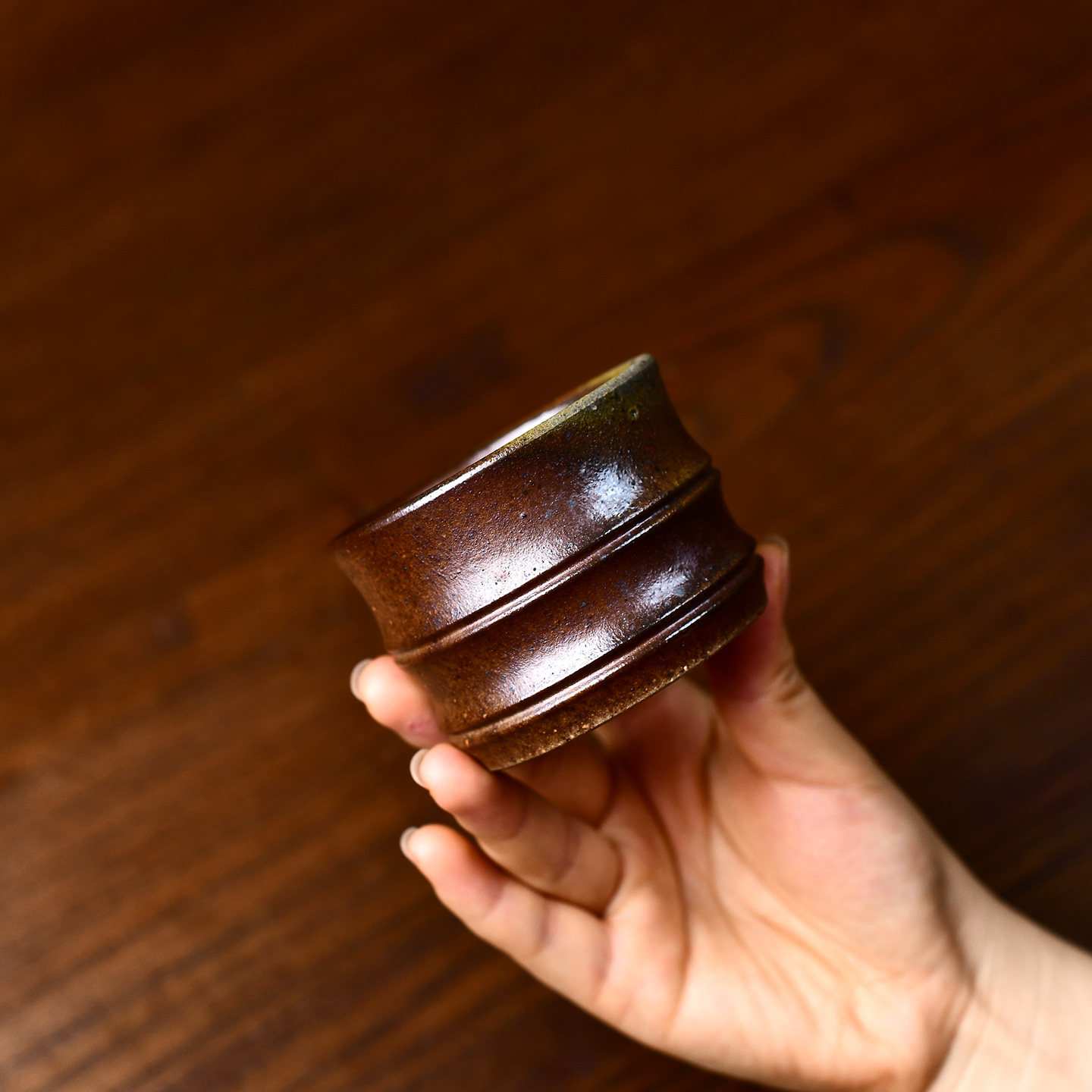 宜兴紫砂杯纯手工柴烧主人杯竹节茶杯大小号容量正品普洱杯120cc