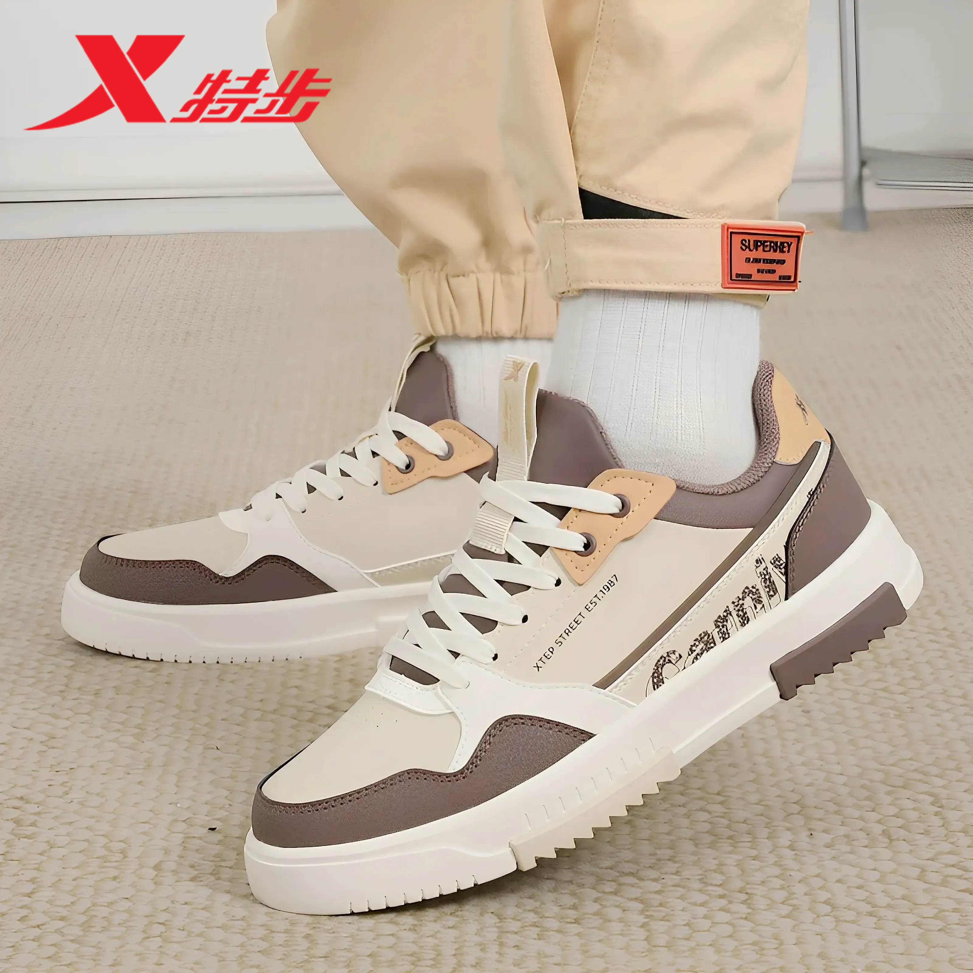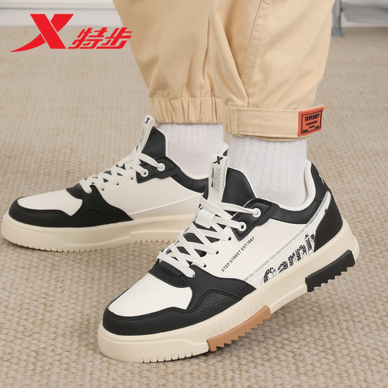 特步男鞋板鞋男秋季新款皮面低帮百搭休闲鞋官方旗舰店正品运动鞋