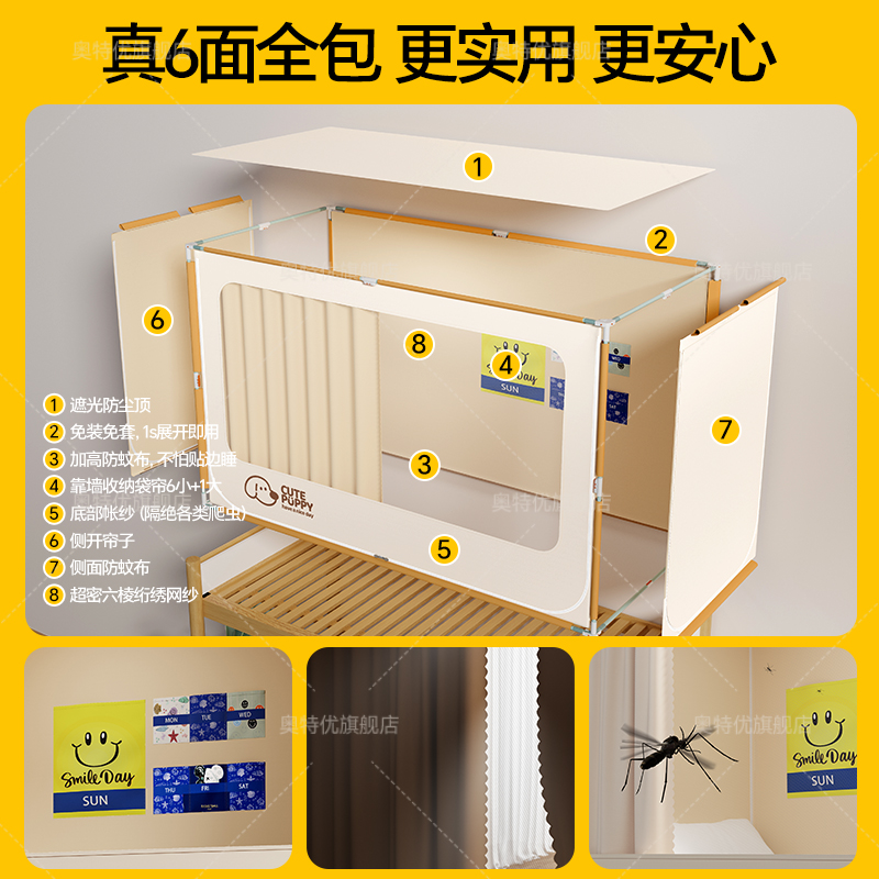 学生宿舍蚊帐单人床寝室上下铺一体式全包床帘遮光2025新款免安装