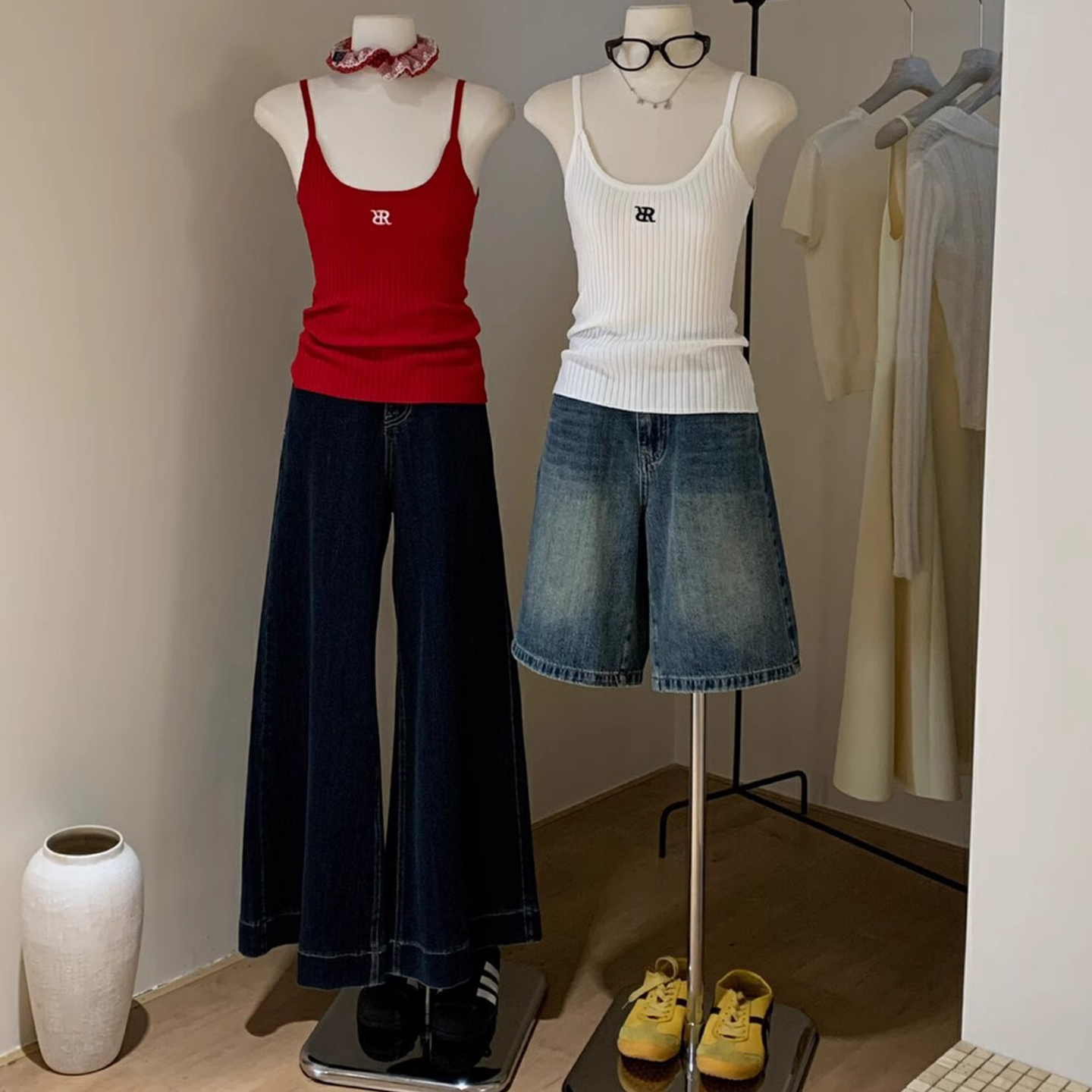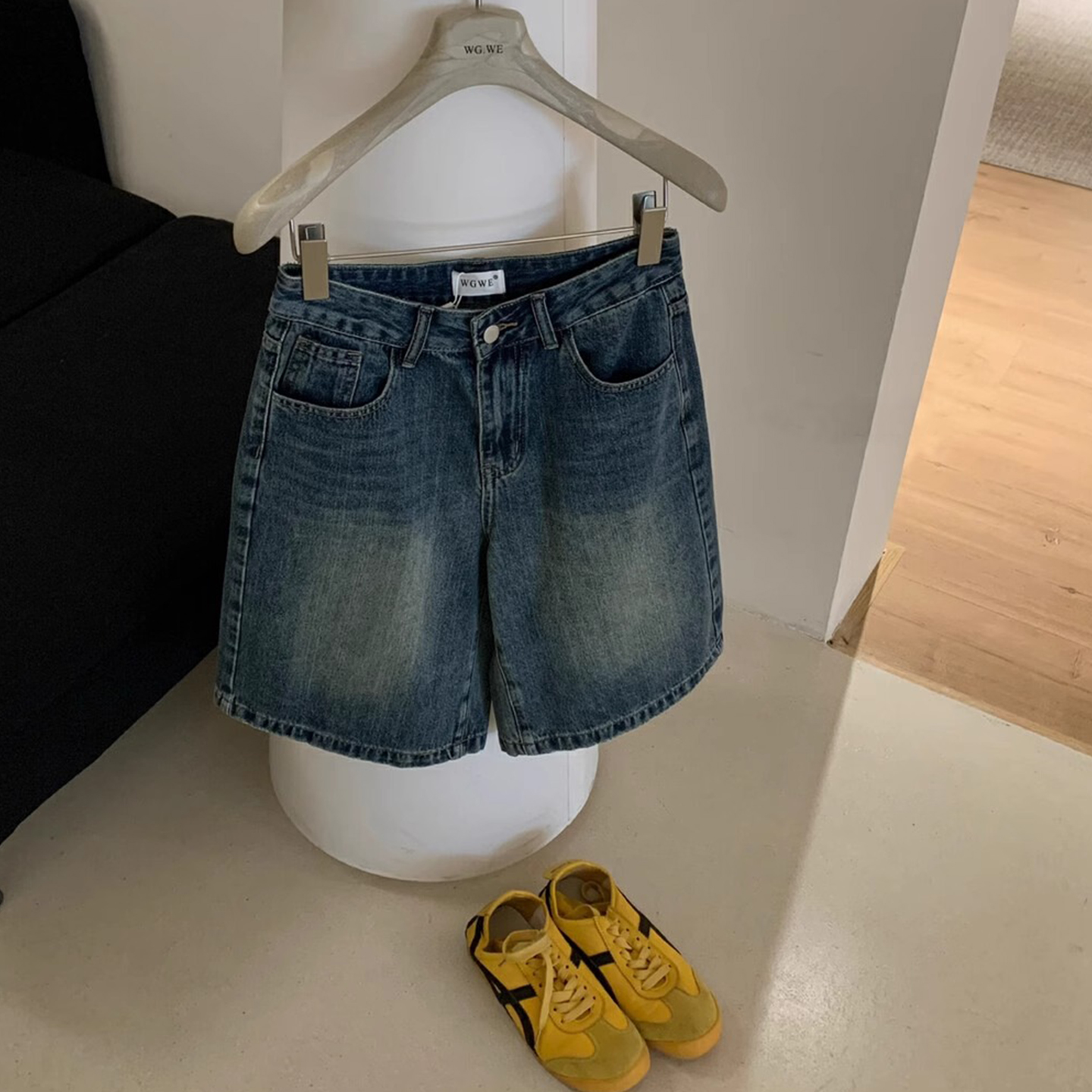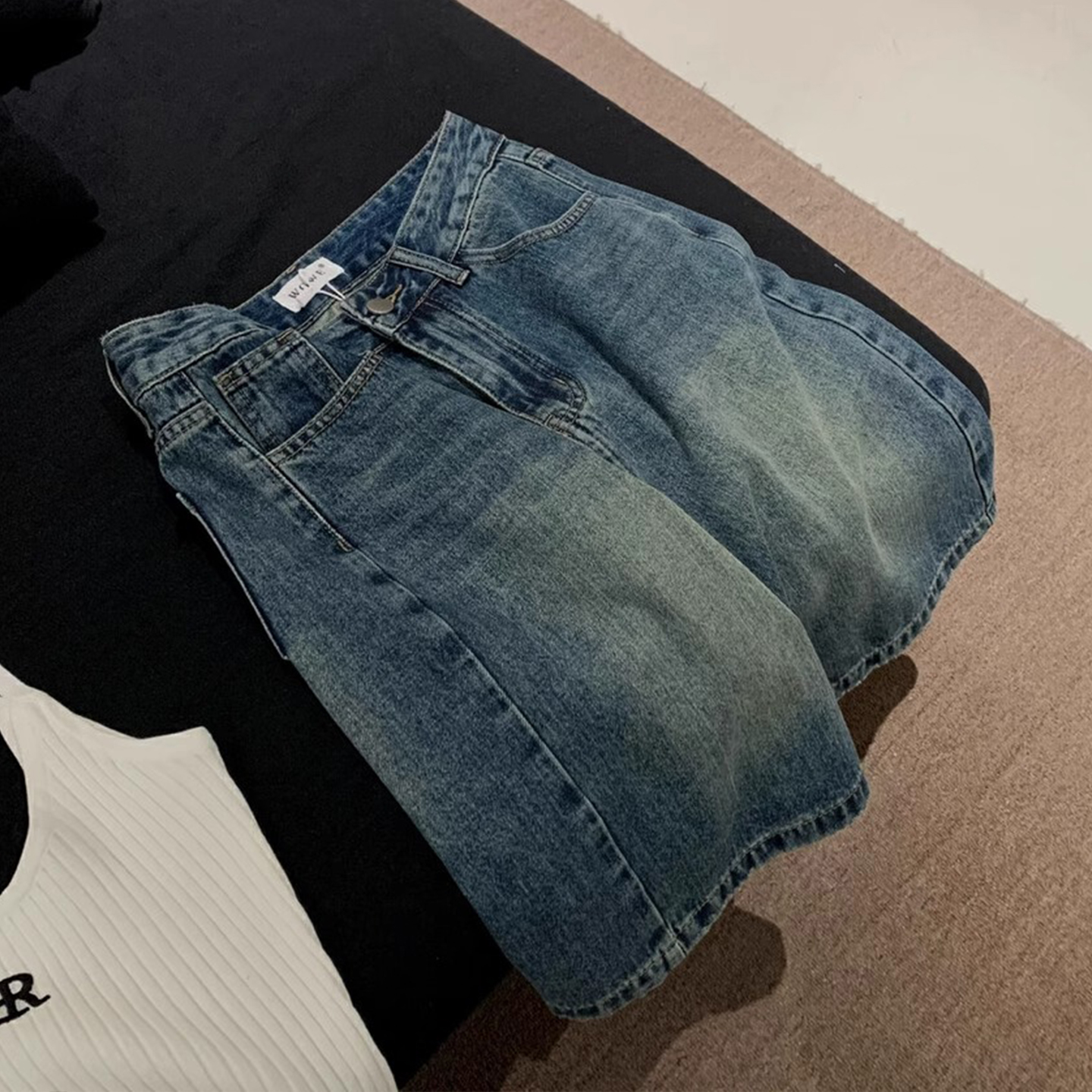 十三行 怀旧复古 低腰牛仔裤宽松阔腿短裤中裤休闲百搭五分裤子