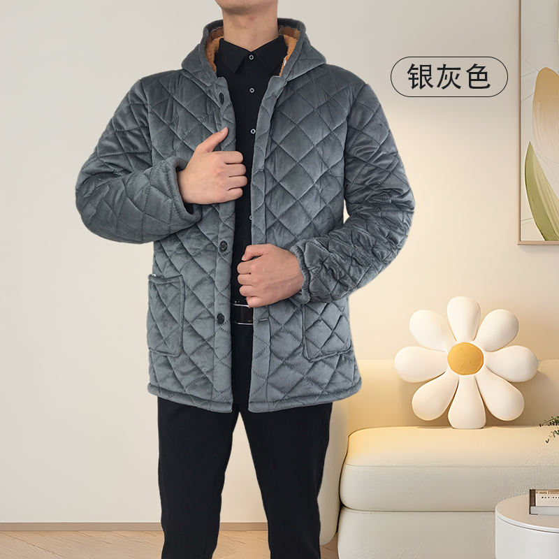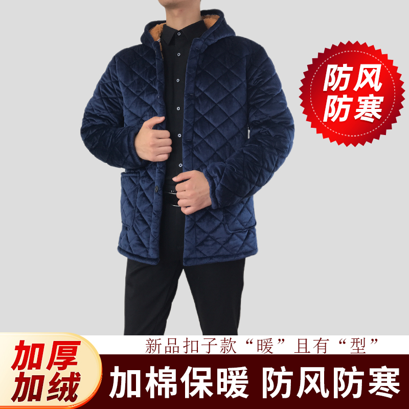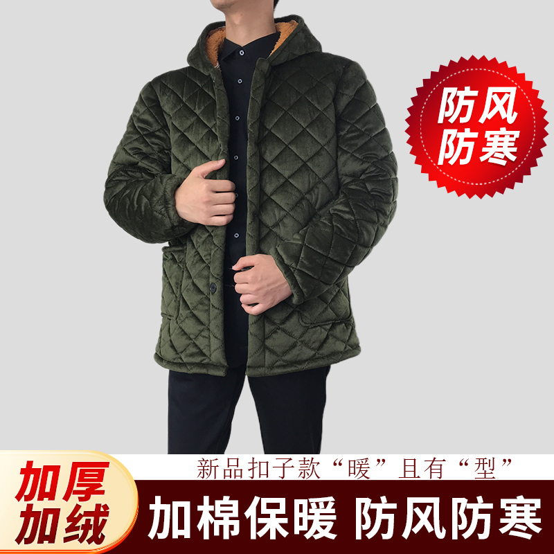 冬季男士棉服加绒加厚扣子棉衣迷彩棉大衣短款保暖防寒劳保棉袄