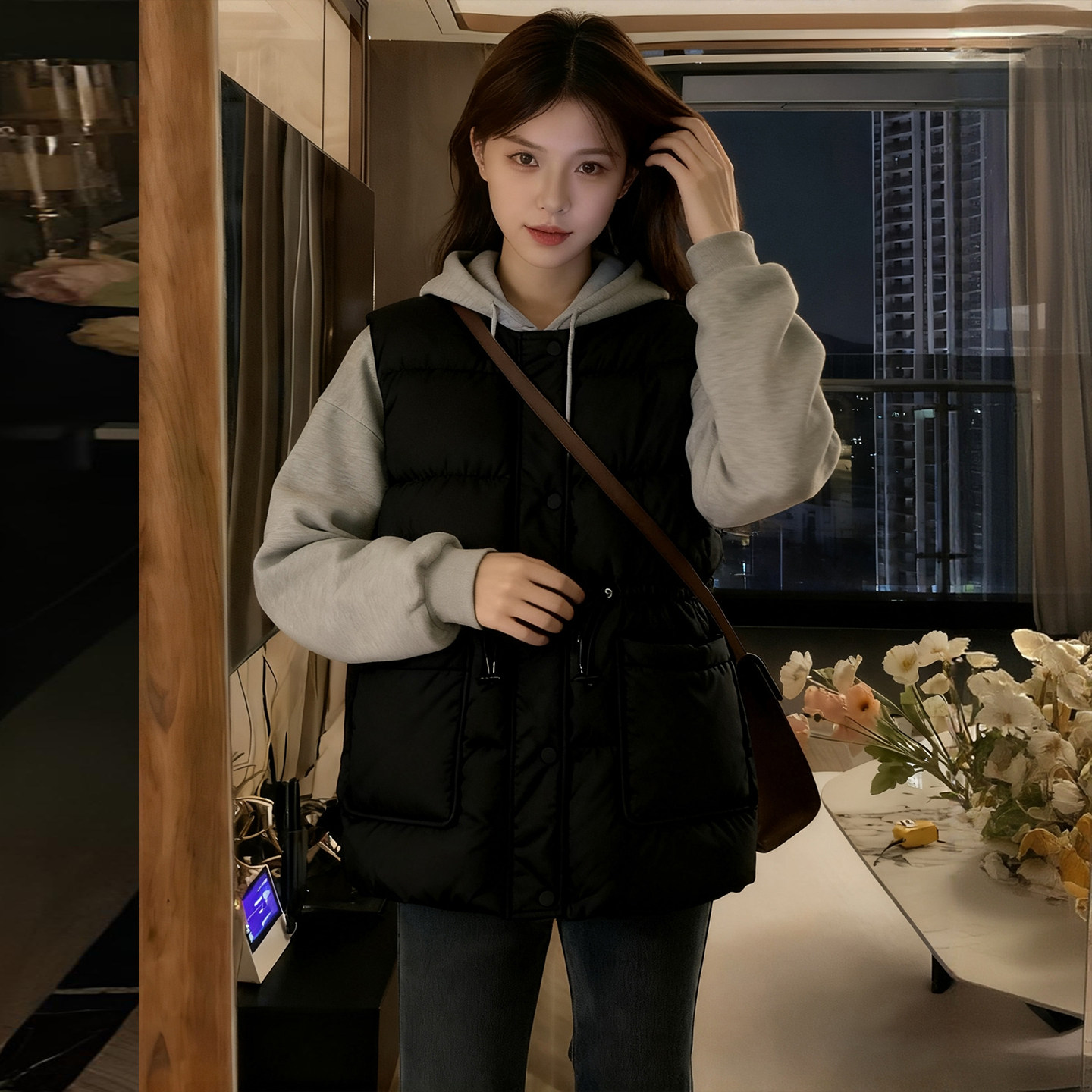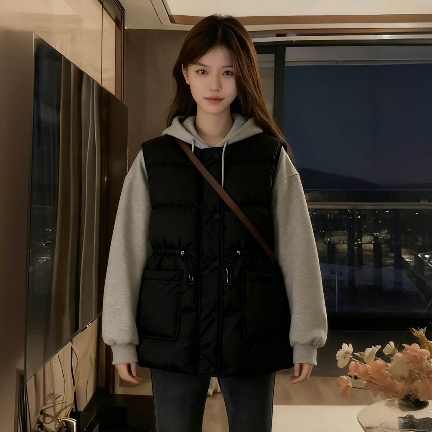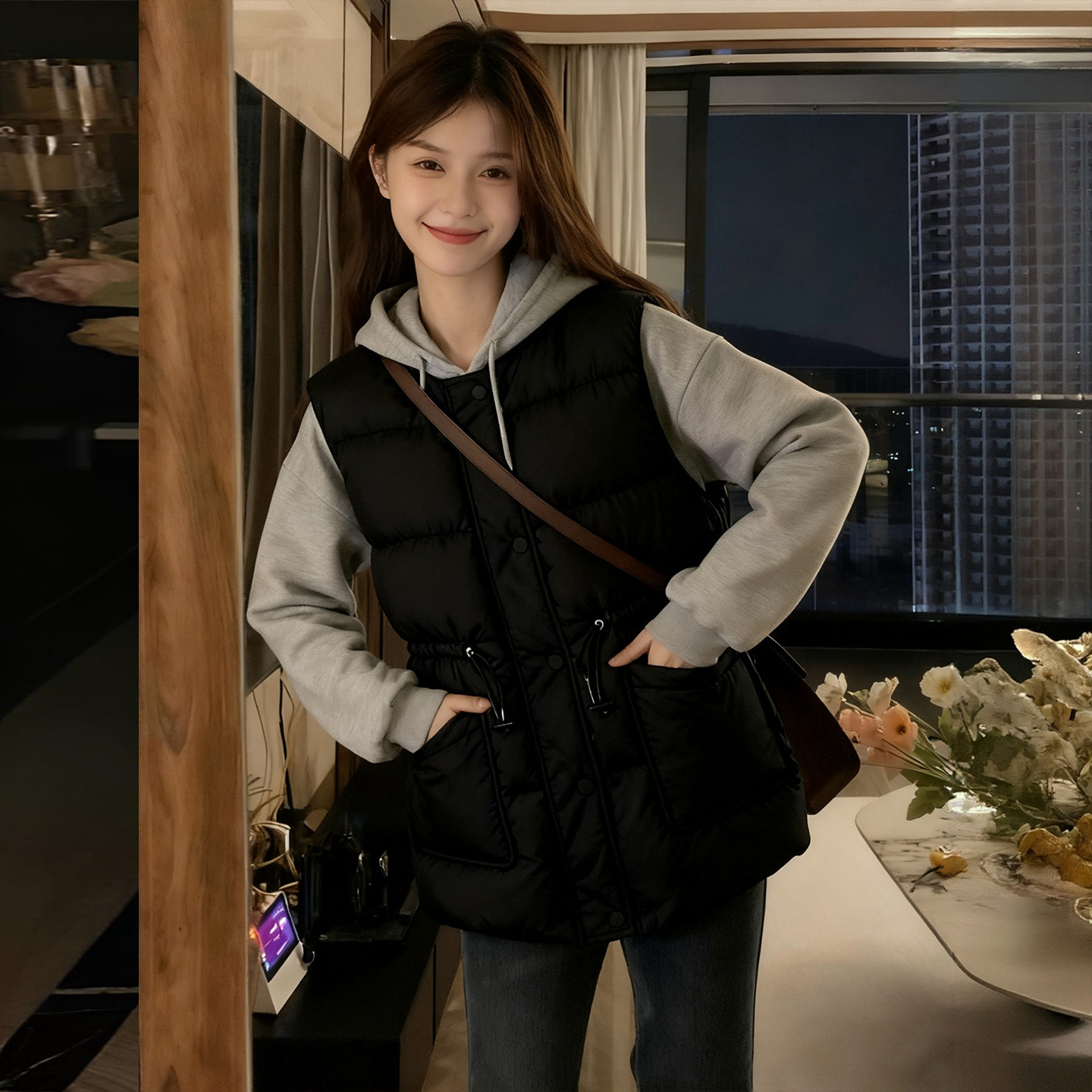 特大码黑色高级感拼接开衫外套女胖mm保暖遮肉显瘦假两件棉服上衣