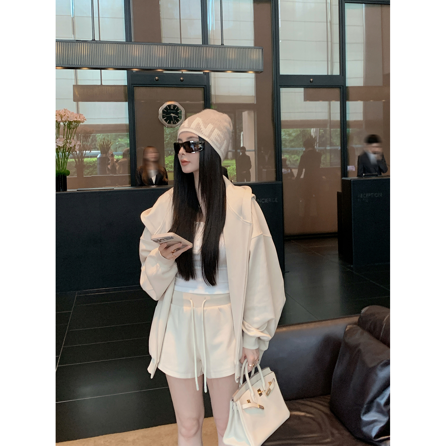MINI STUDIO徐琳 「懒人周末」连帽双面卫衣料外套抽绳短裤套装