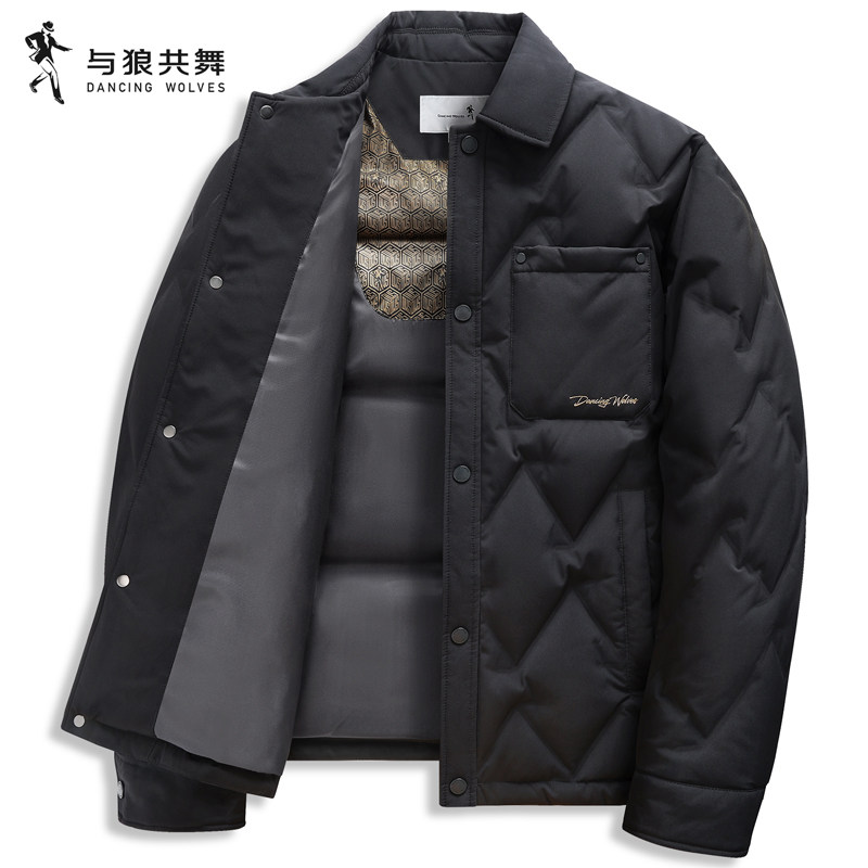 【轻暖】与狼共舞翻领羽绒服男2025秋冬新款刺绣休闲轻薄保暖外套