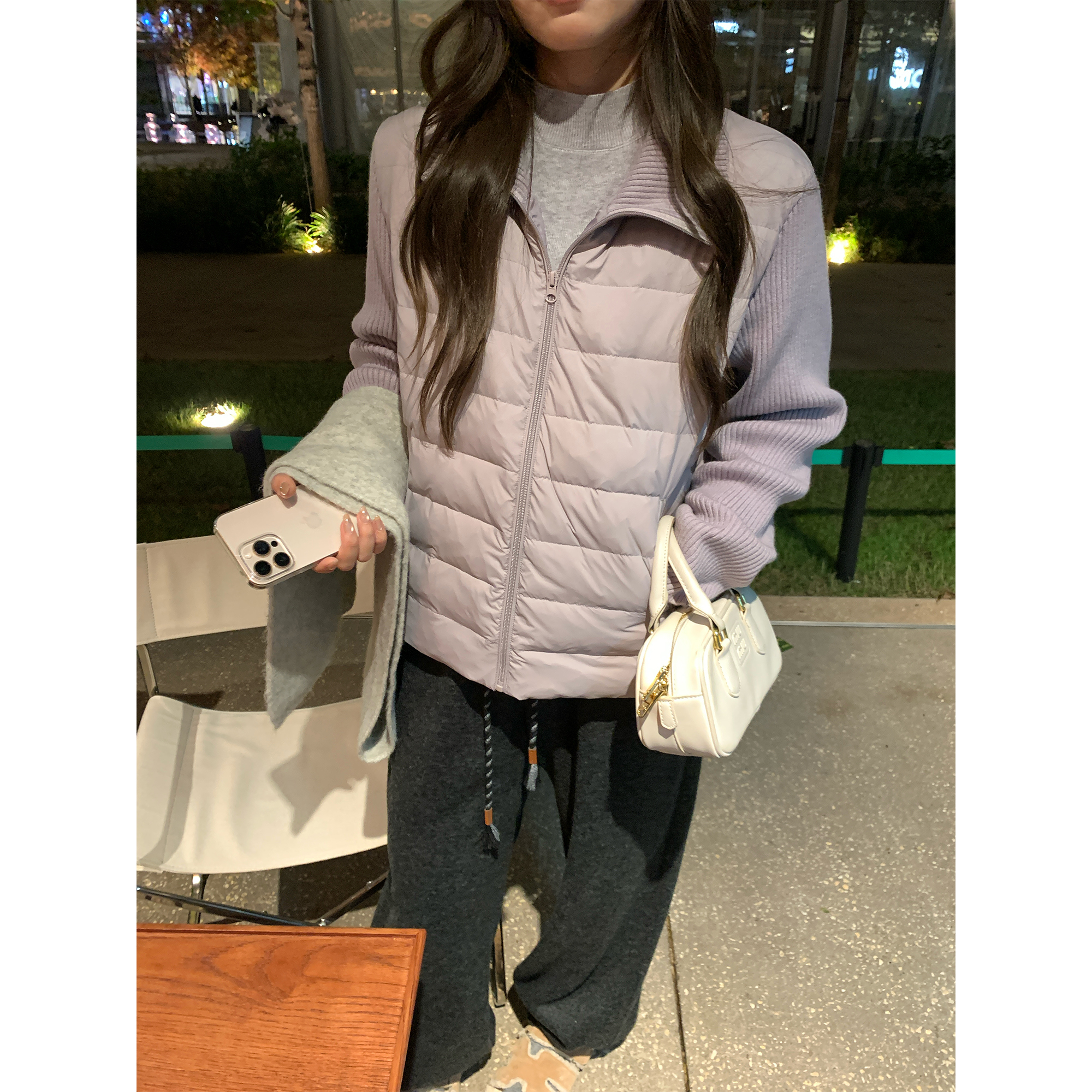 NAZ那子大码冬季90白鸭绒拼接立领轻盈显瘦胖mm轻薄羽绒服外套女