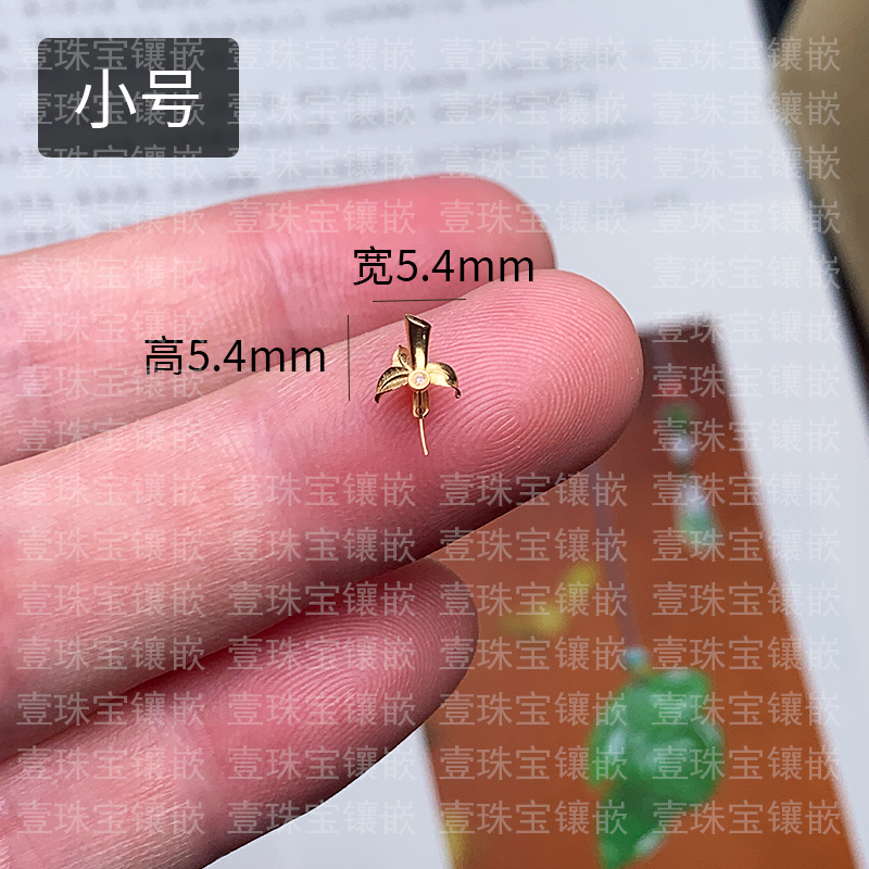 纯18K金扣头精致双叶设计夹扣玉石翡翠寿桃福瓜吊坠扣项链坠配件