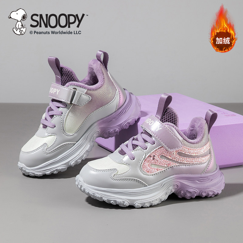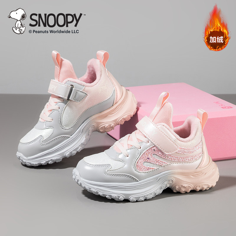 史努比童鞋女童加绒运动鞋秋冬2025新款儿童鞋子二棉鞋保暖跑步鞋