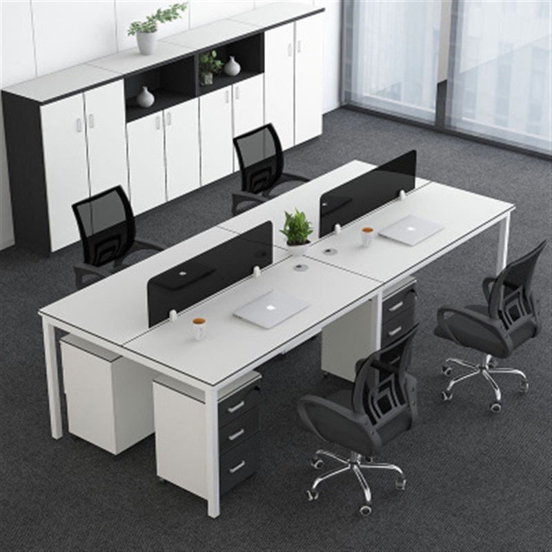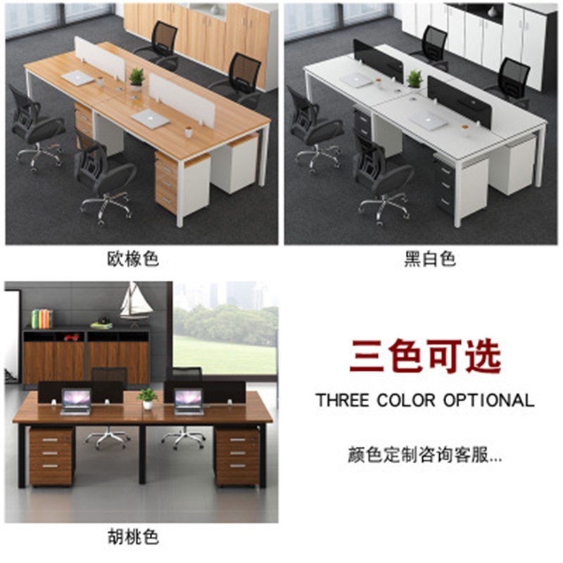 办公家具简约现代钢木桌4人位桌椅组合多人位卡座职员办公电脑桌