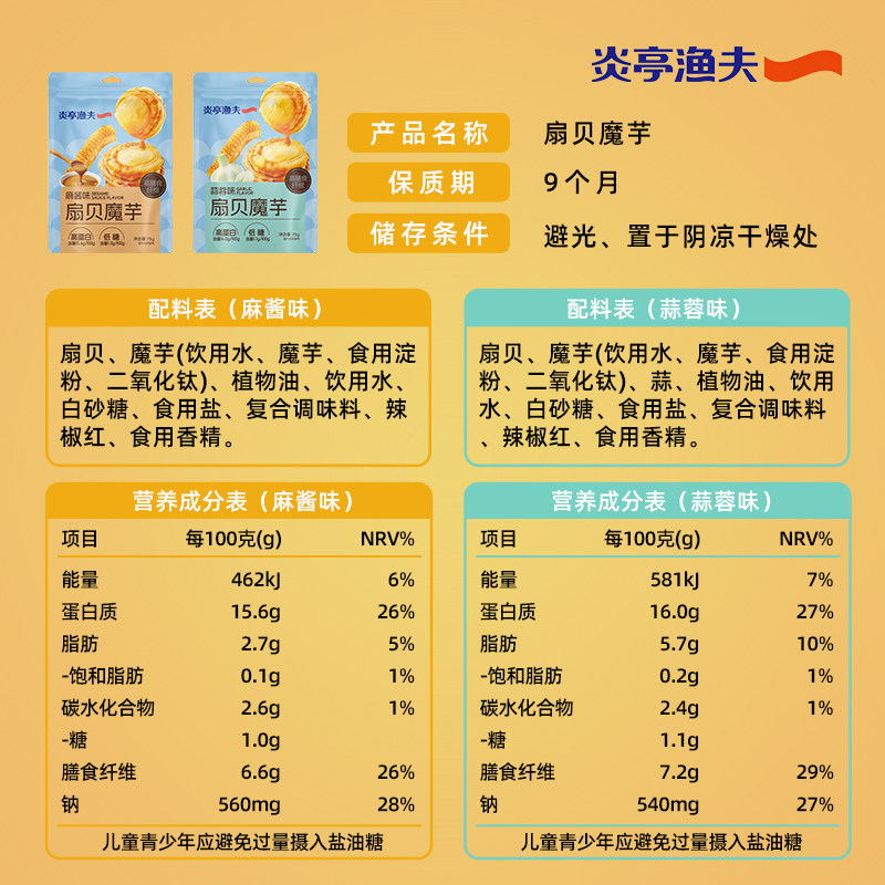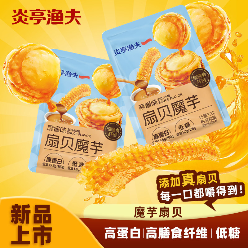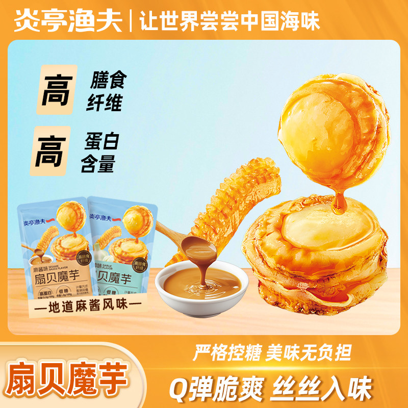 炎亭渔夫扇贝魔芋麻酱蒜蓉味即食休闲海味小零食解馋海鲜熟食海鲜