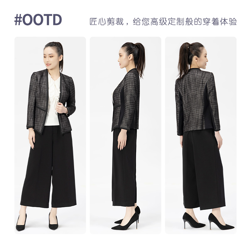 靓诺春季西服短款外套女修身职业气质羊毛大码女装上衣LS20325A