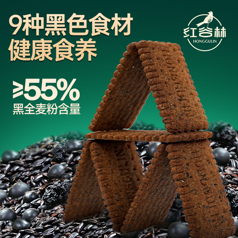 红谷林低GI无糖9黑藜麦谷物饼干黑全麦代早餐粗粮健康解馋小零食