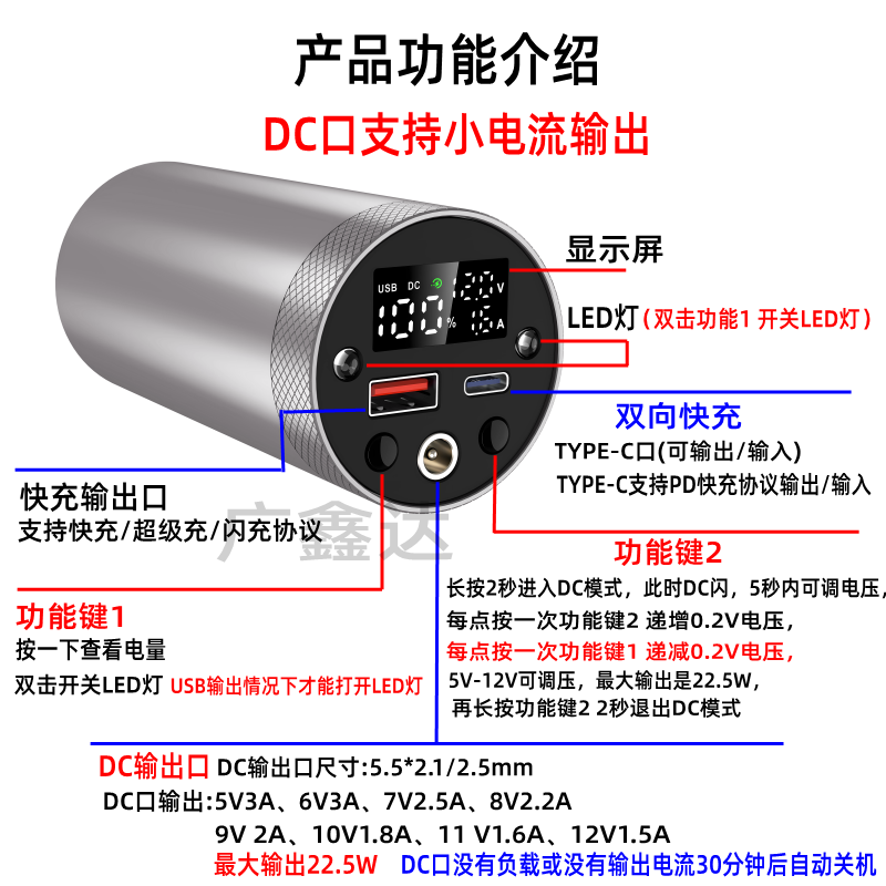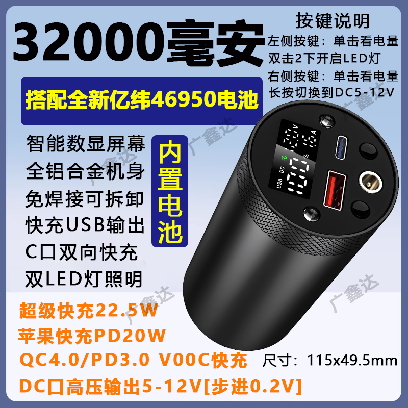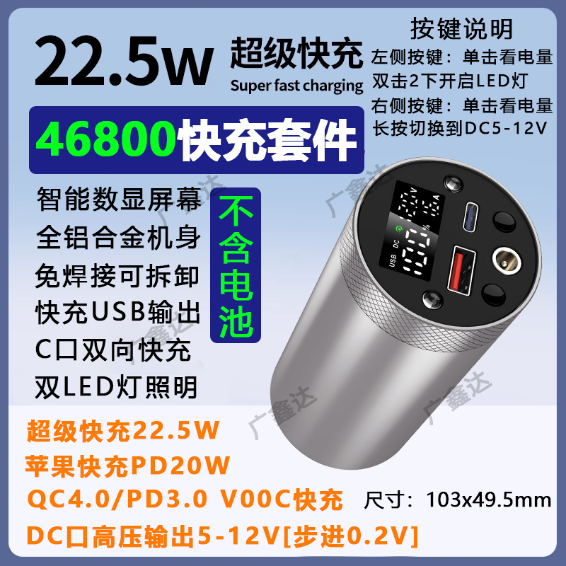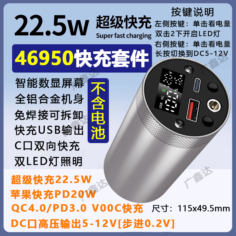 亿纬46950电池 充电宝22.5W快充可拆卸12V调压铝合金外壳带手电