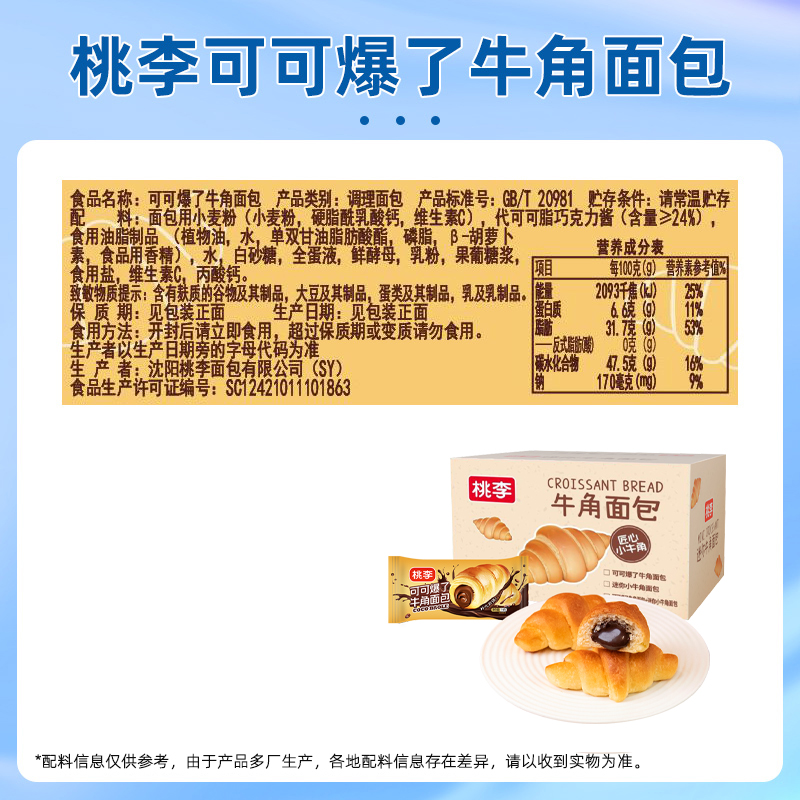 桃李可可爆了巧克力酱夹心迷你牛角包280g爆浆面包网红早餐零食