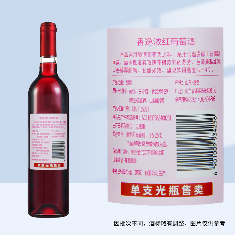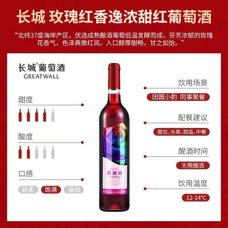 长城香逸浓甜红葡萄酒750ml*6瓶甘甜怡人女性之选传统酿造微醺