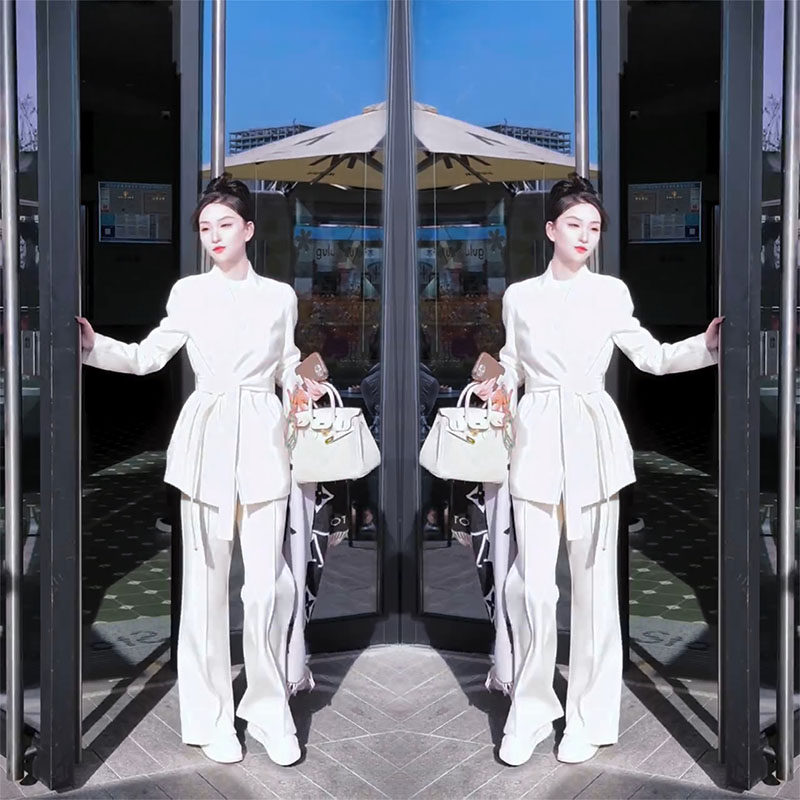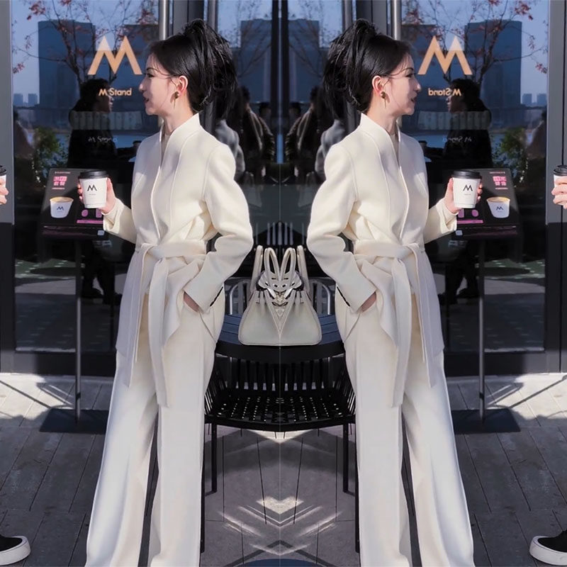 高级感小香风呢子中长款大衣套装