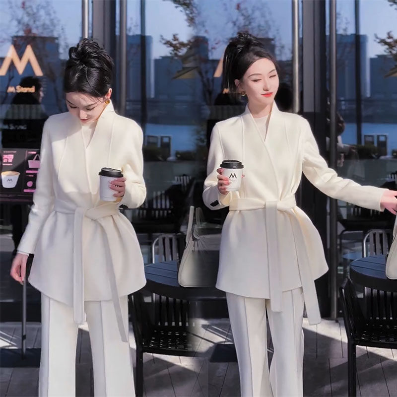 白色毛呢外套女秋冬2024新款法式复古高级感小香风呢子中长款大衣