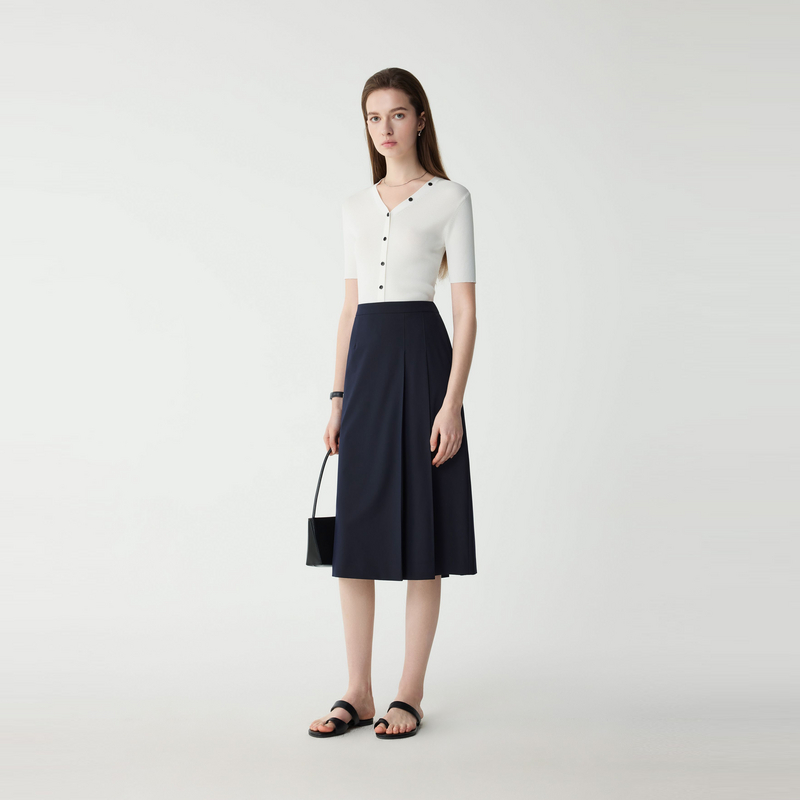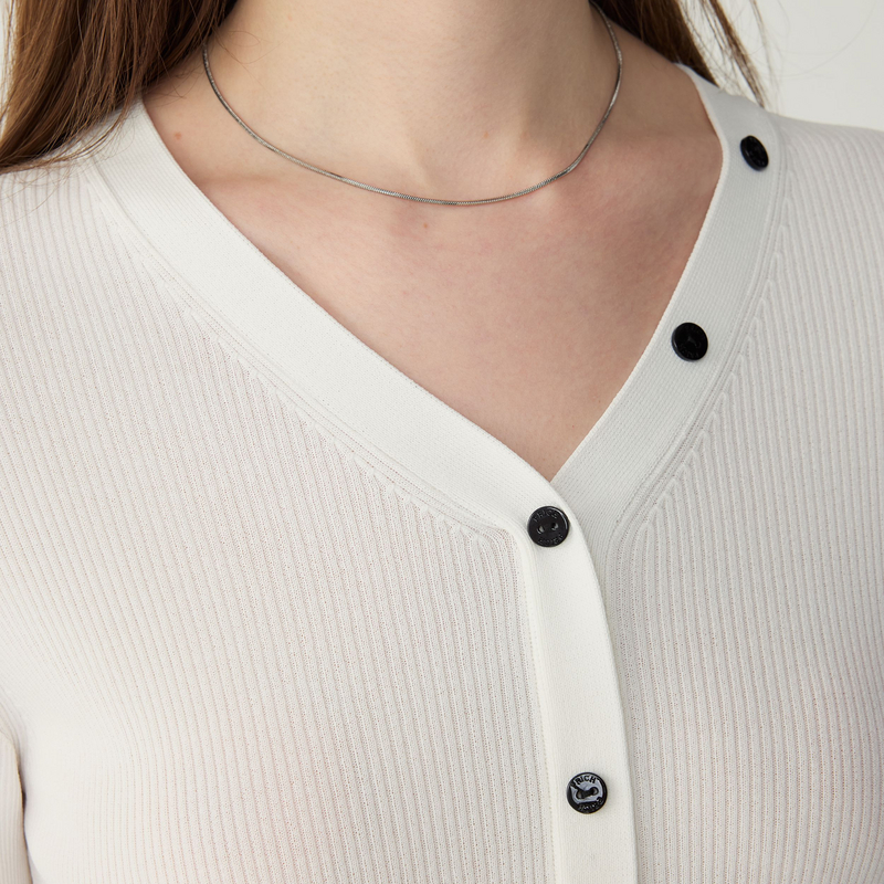 PRICH淡人别致V领针织衫2025夏季新款坑条肌理修身短袖上衣女
