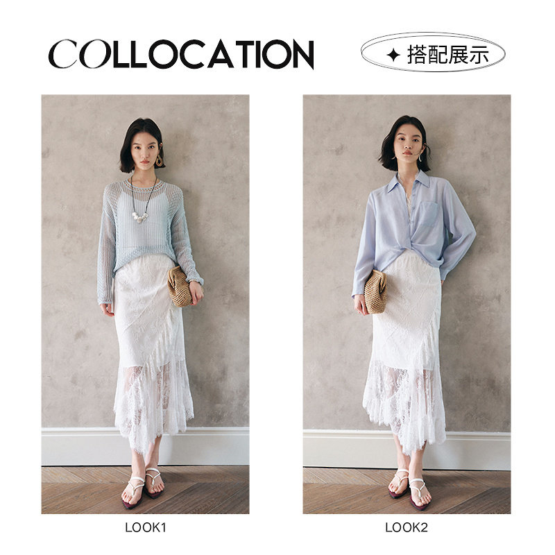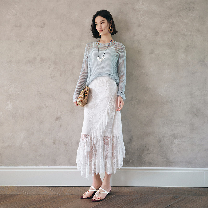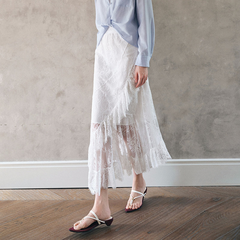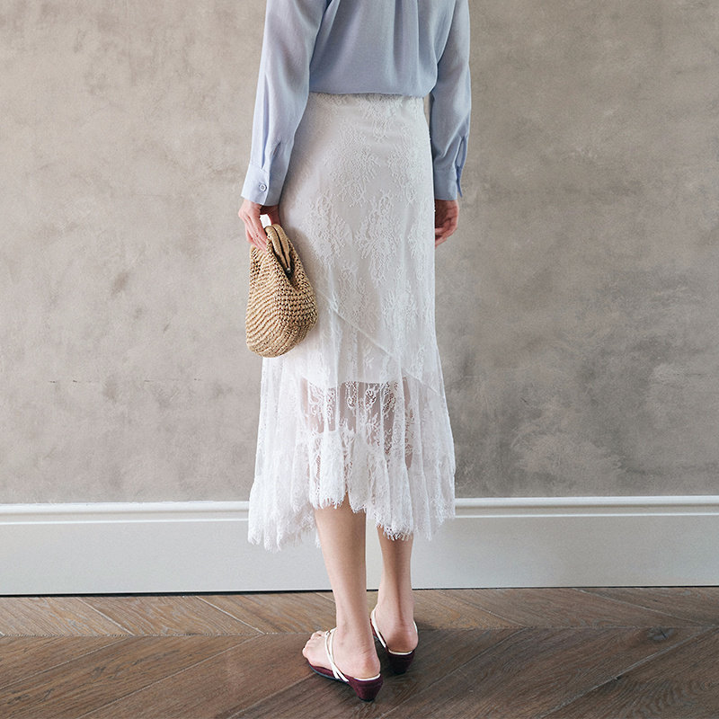 法式浪漫高腰蕾丝仙女裙MOFAN摩凡夏装新款白色不规则显瘦半身裙