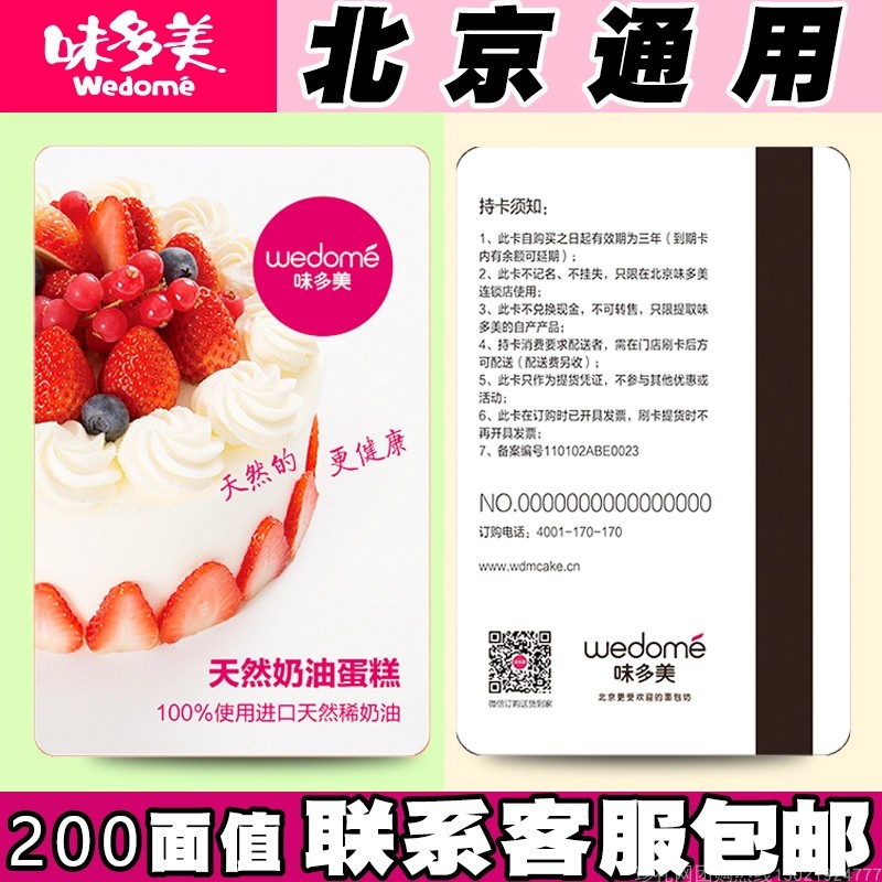 北京味多美卡200面值蛋糕卡 味多美提货卡北京实体门店通用