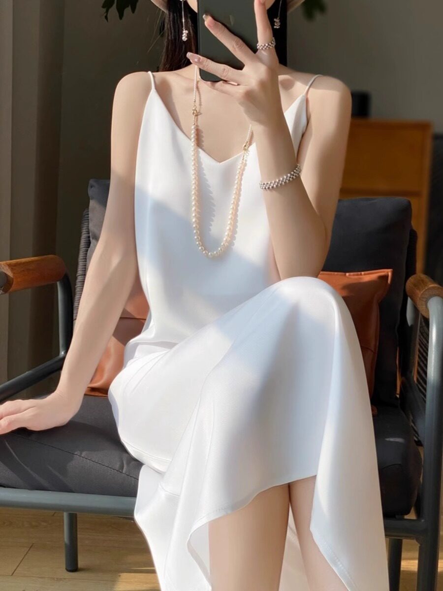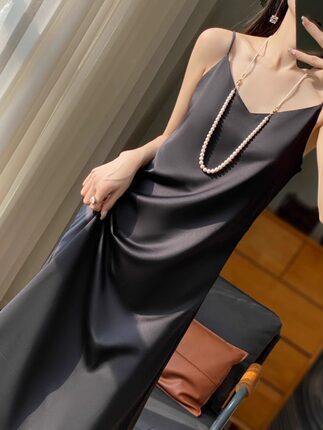 夏季真丝醋酸缎吊带显瘦连衣裙