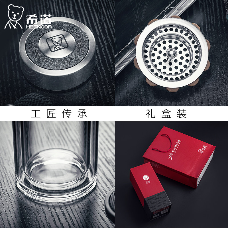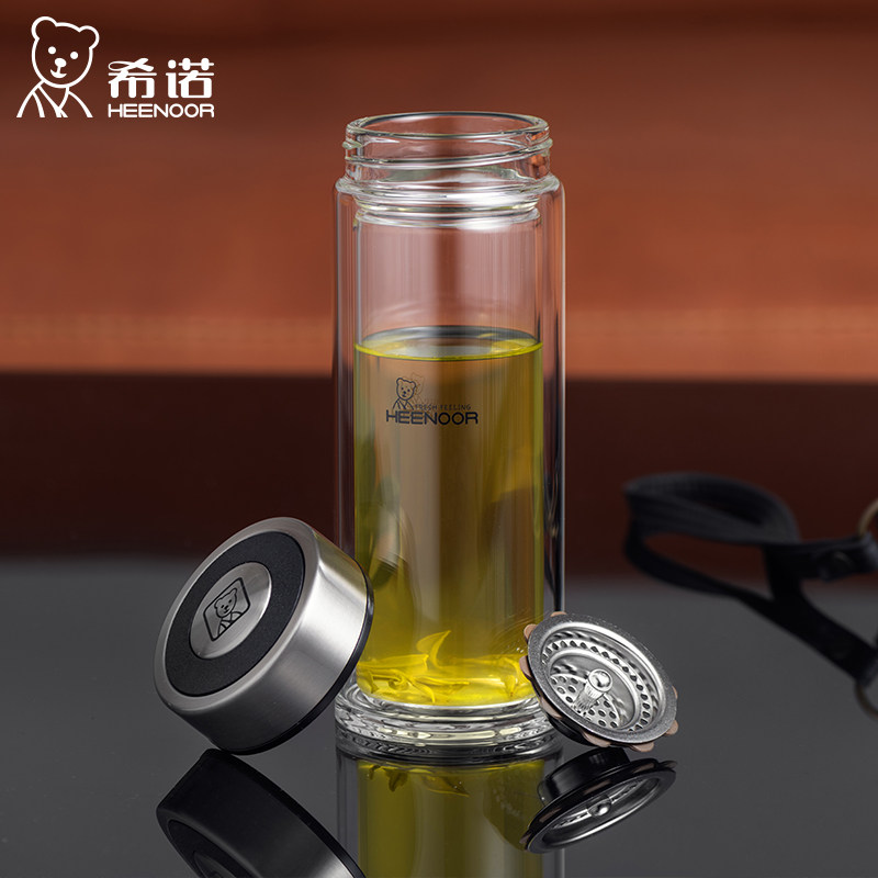希诺双层玻璃杯泡茶保温水杯便携车载茶杯商务办公杯过滤水晶杯子
