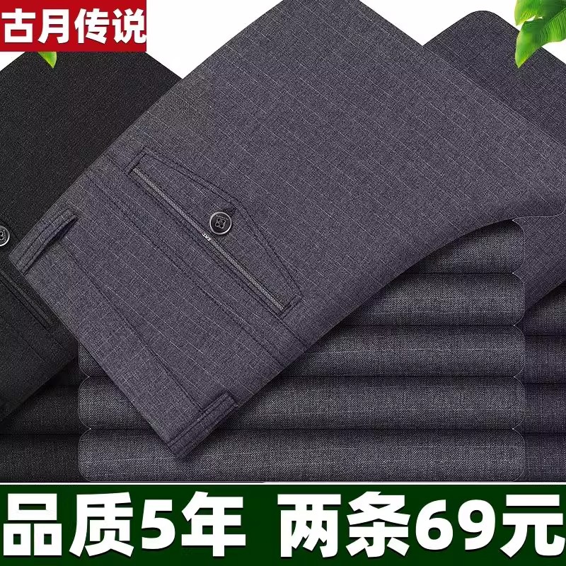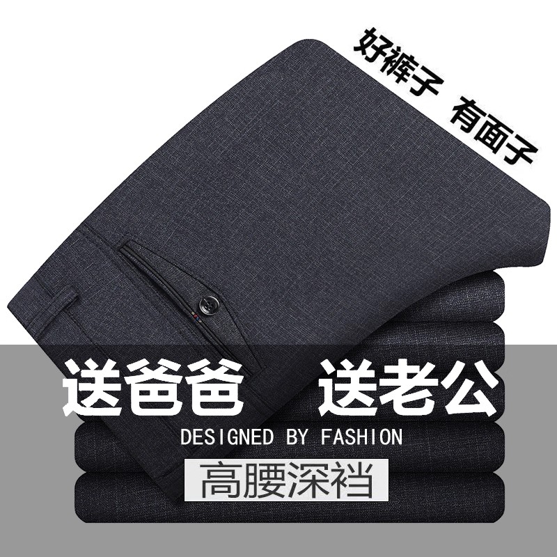 男士中年西裤中老年人直筒宽松春秋厚款高腰加绒加厚爸爸休闲裤子