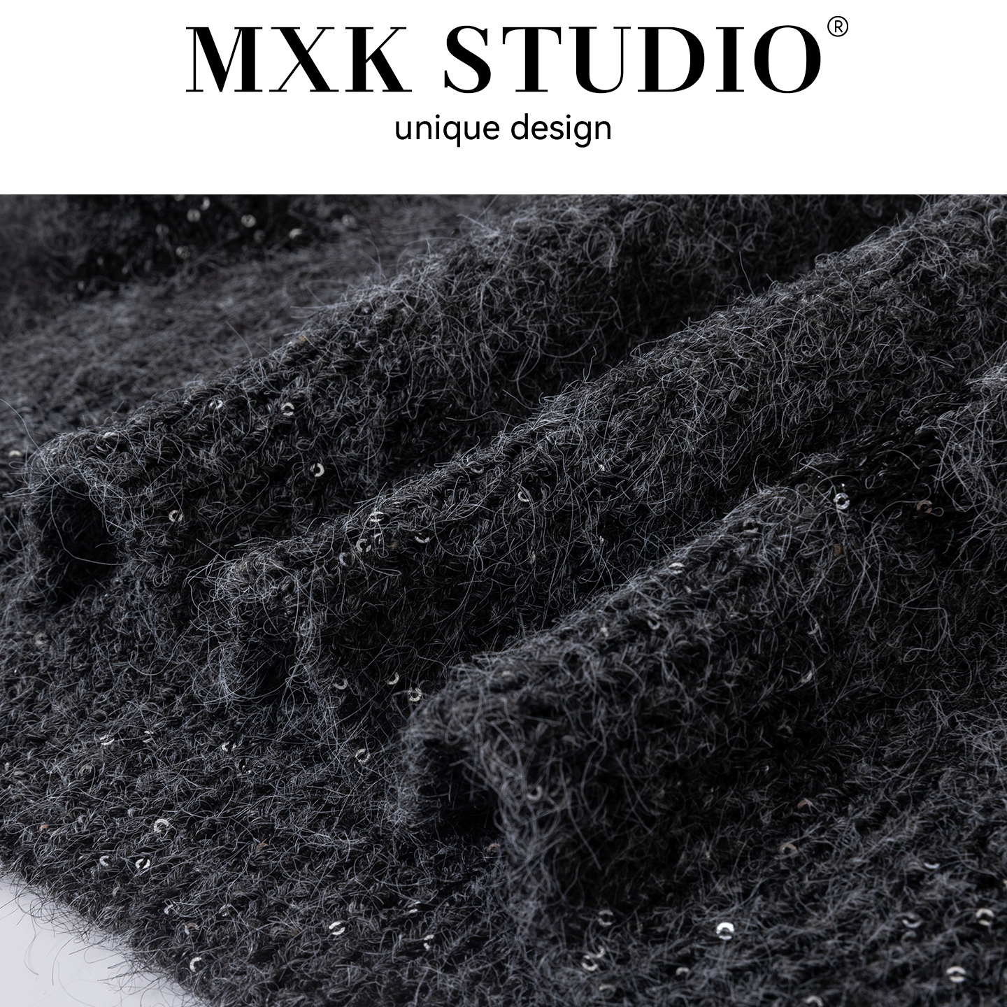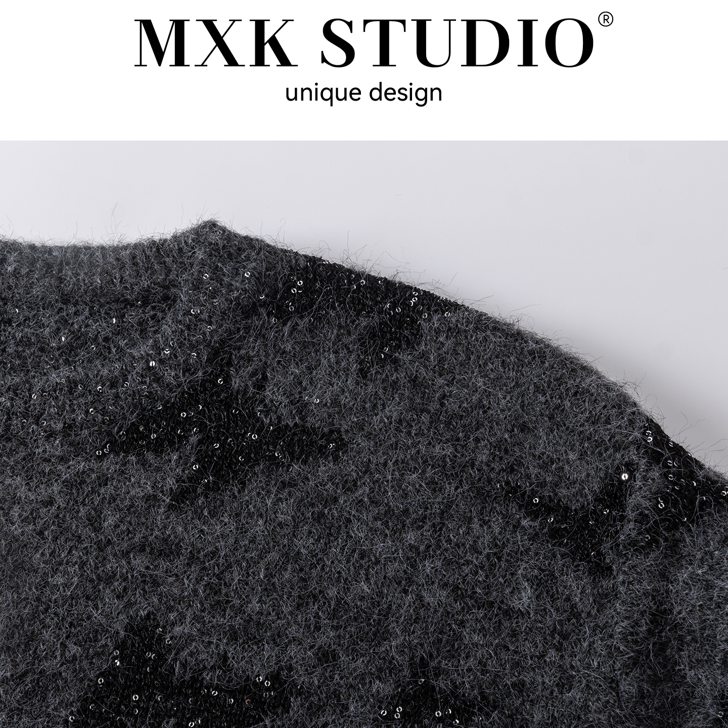 法式小香风蝴蝶灰色毛衣女款2025新款秋冬季宽松慵懒风针织衫上衣