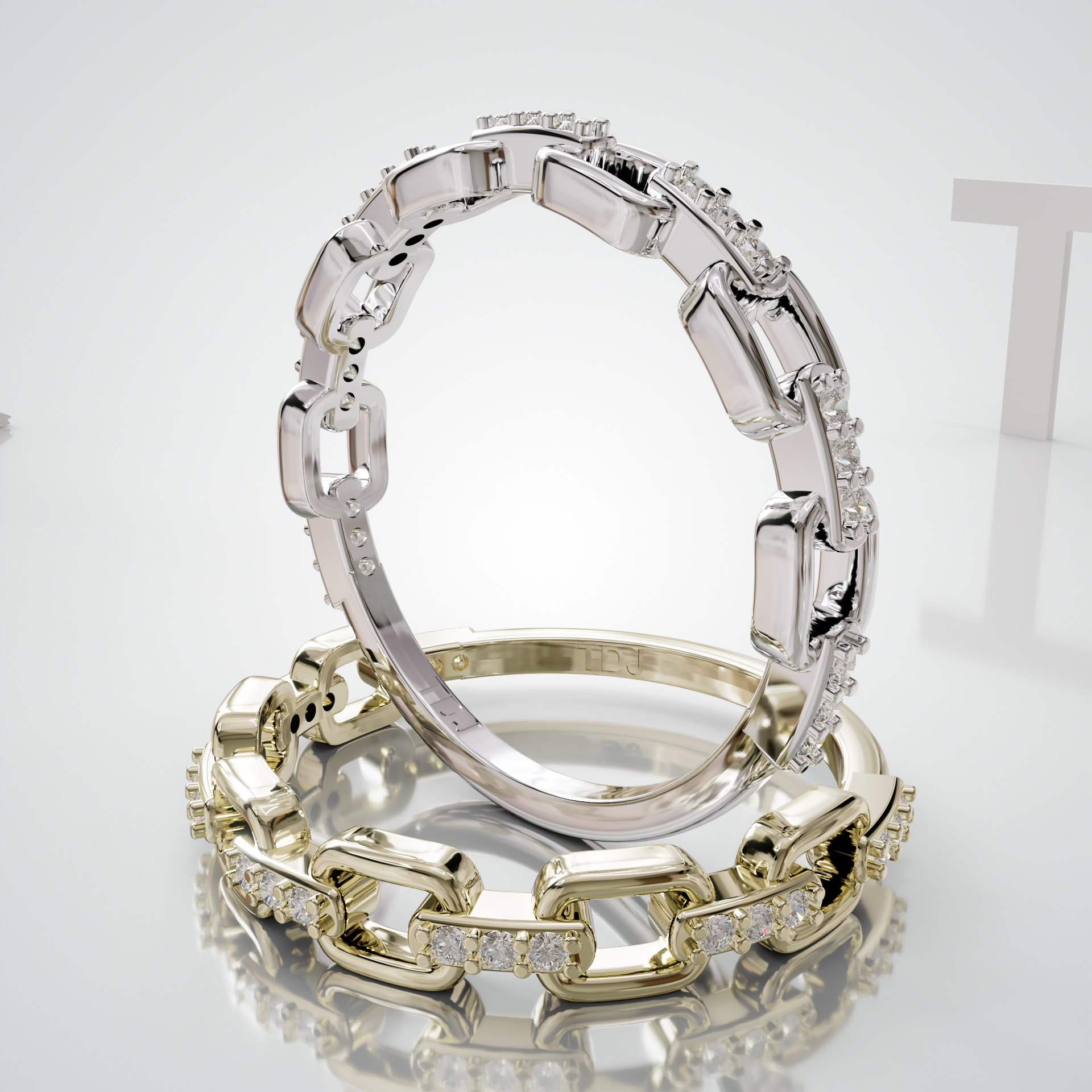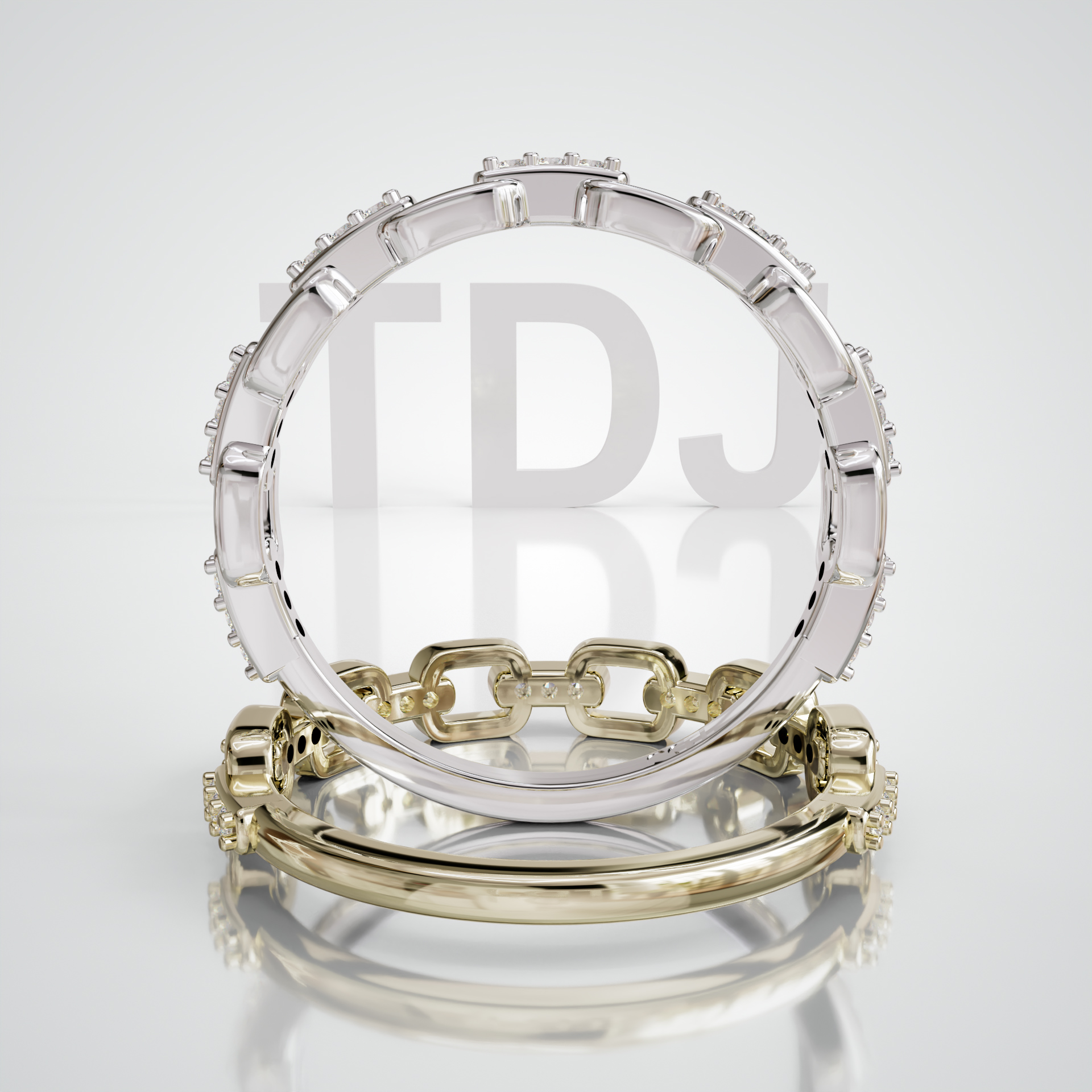 壹钻珠宝18K金链环镶钻风戒指定制刻字轻奢个性情侣对戒女潮指环