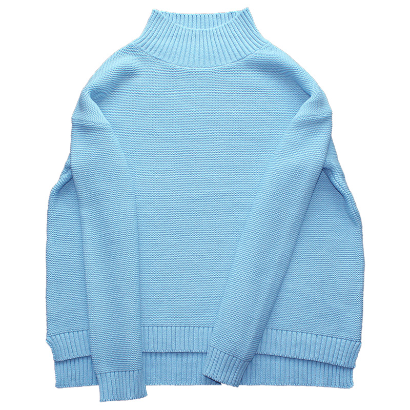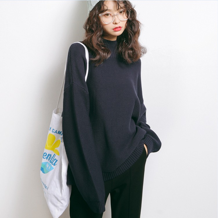 慵懒风纯棉线毛衣女宽松韩版全棉bf针织衫半高领套头外穿秋冬加厚